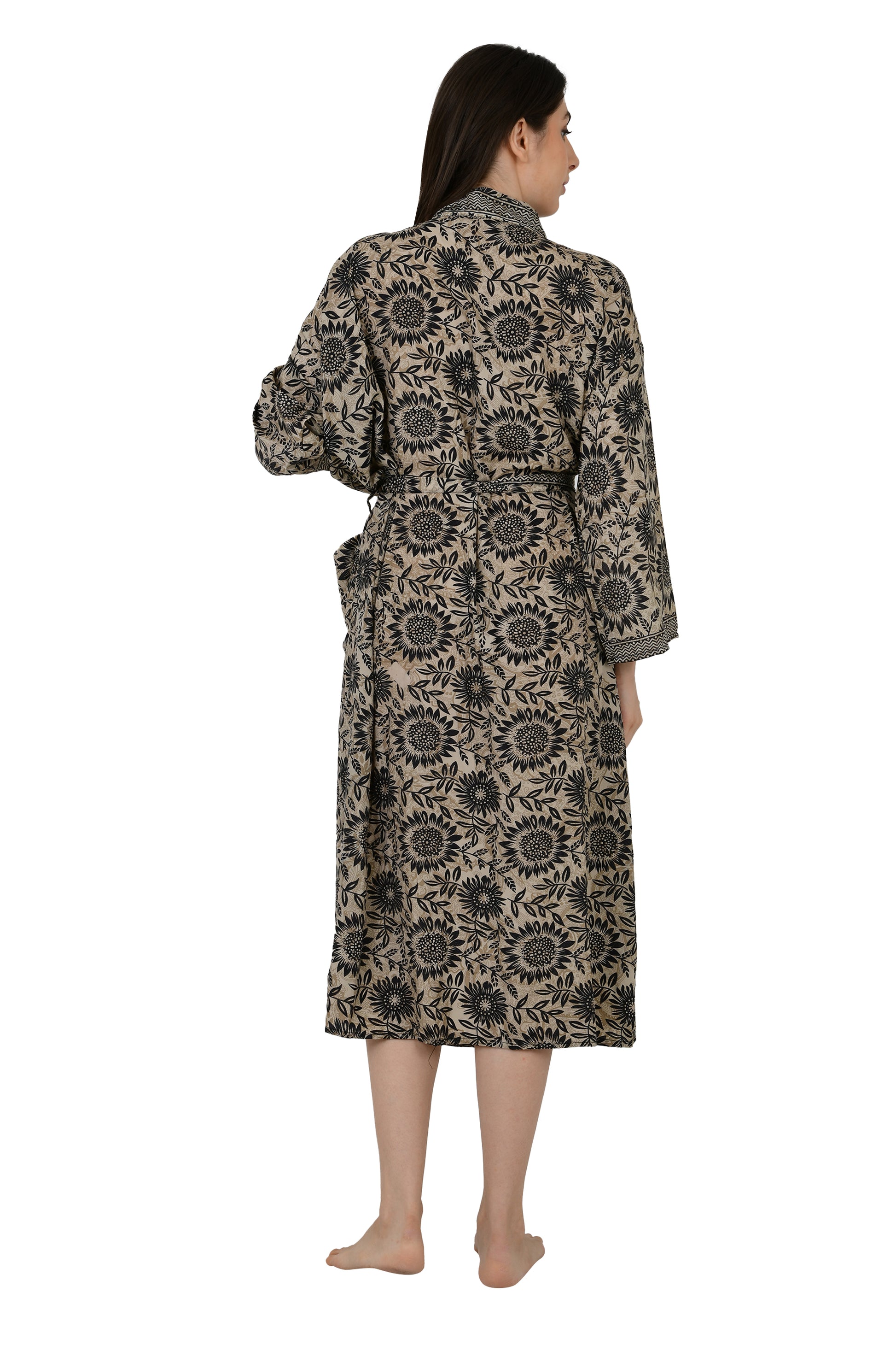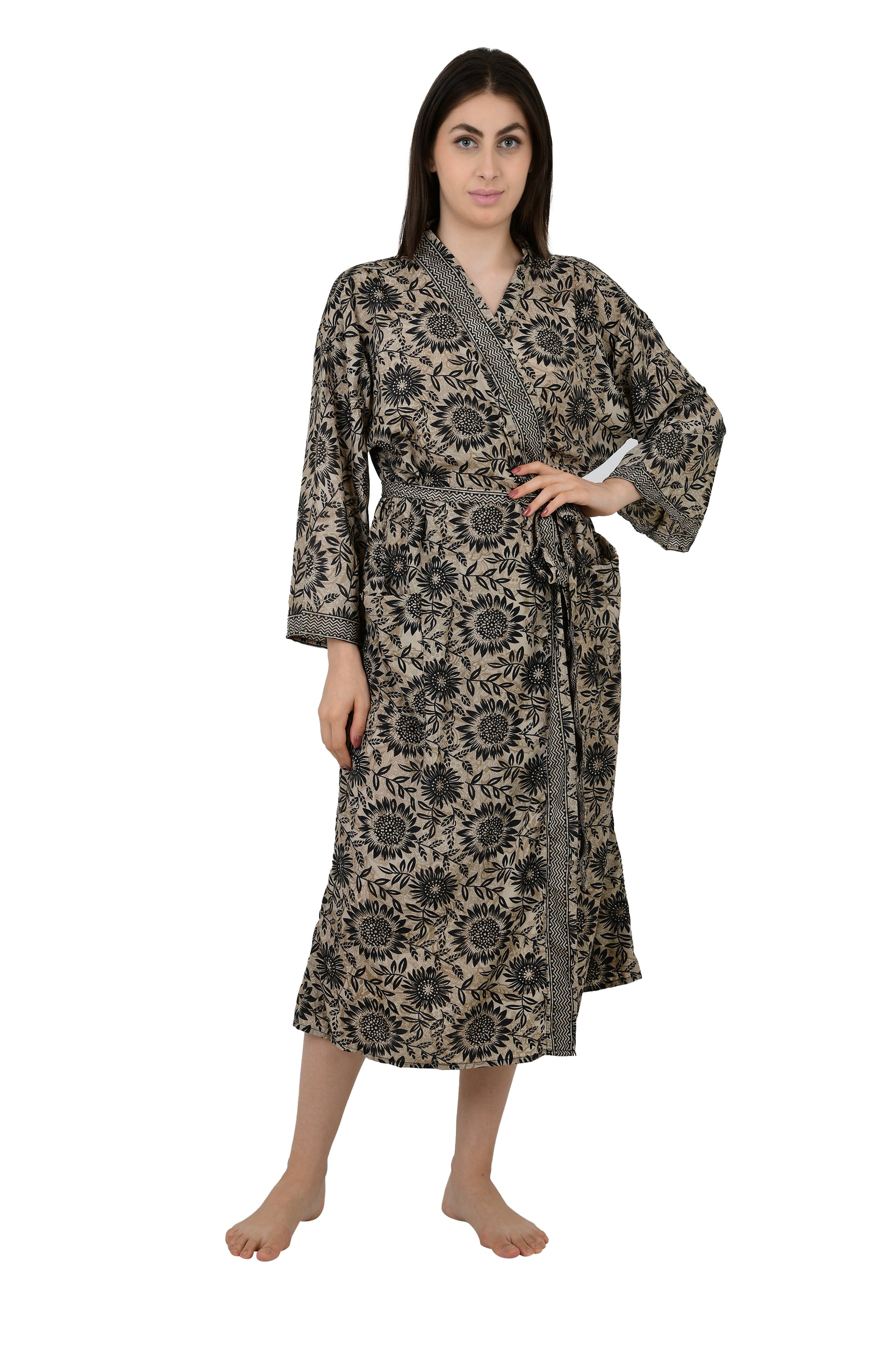 Floral Silk Blend Kimono Robe: Hand-Stitched Sari Fabric