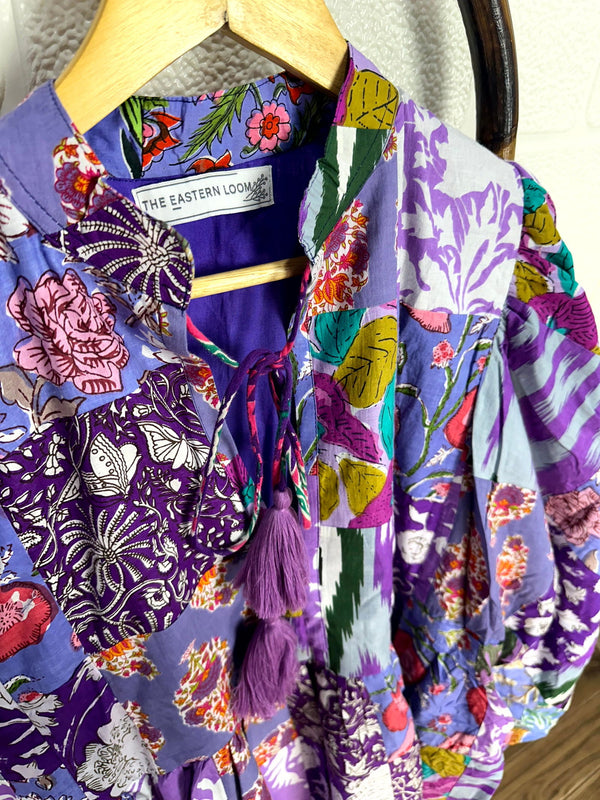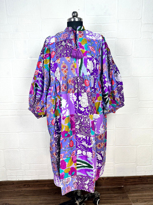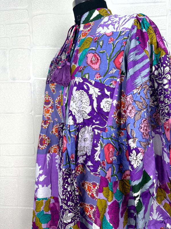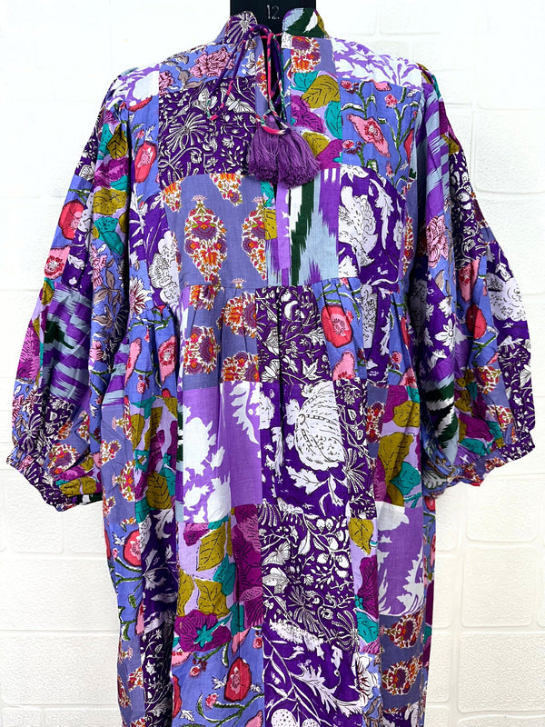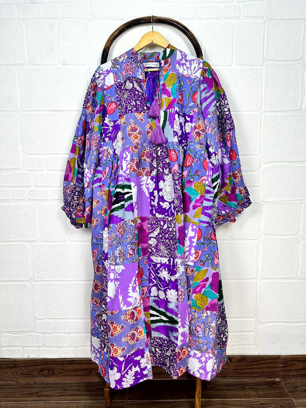 Patchwork-Kleid aus reiner Baumwolle mit Handblockdruck.
