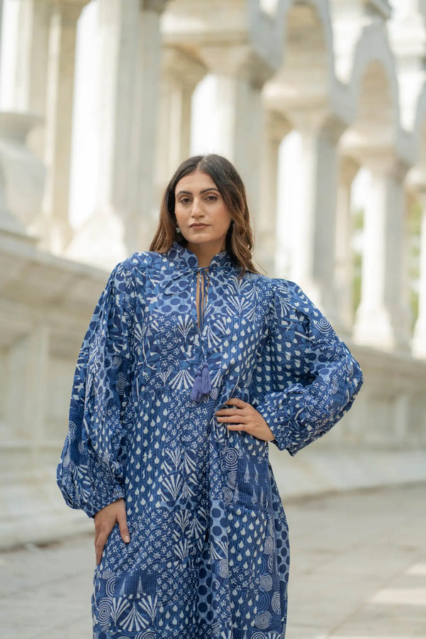 Beautiful Handprints made in small villages of Rajasthan using wooden blocks and natural dyes turned into gorgeous Dress.