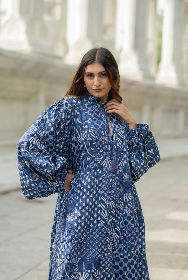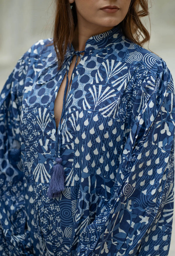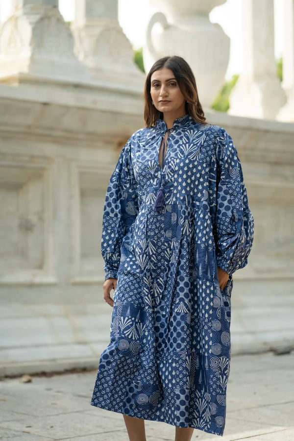 Pure Cotton Patchwork Dress with Hand Block printing.