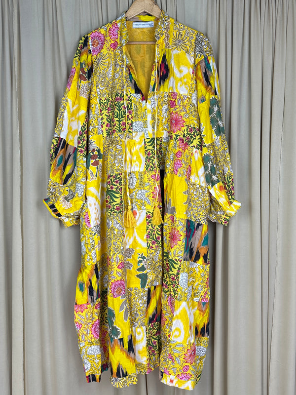 This is a hand-stitched patchwork dress, so every piece has a slight variation of patches but the shades would be similar.
