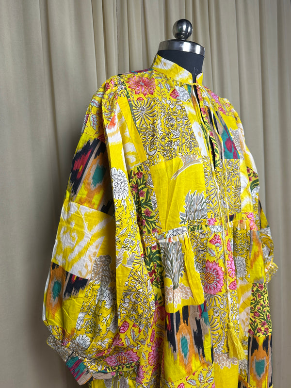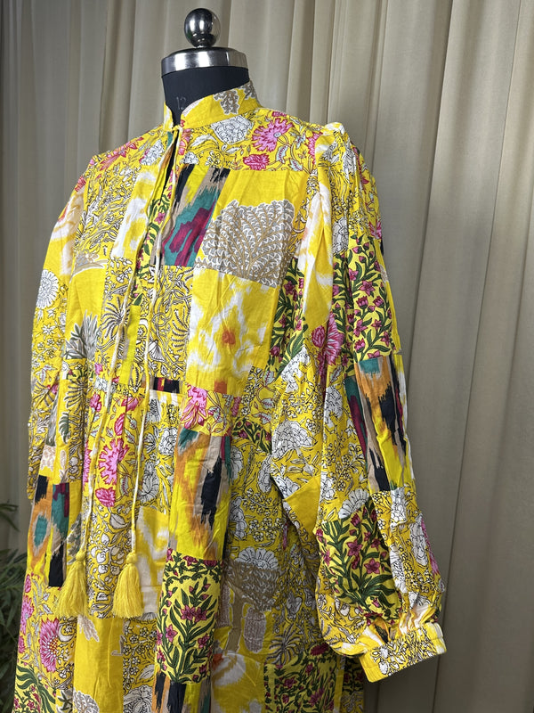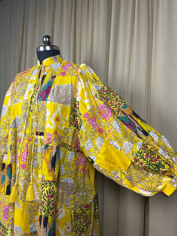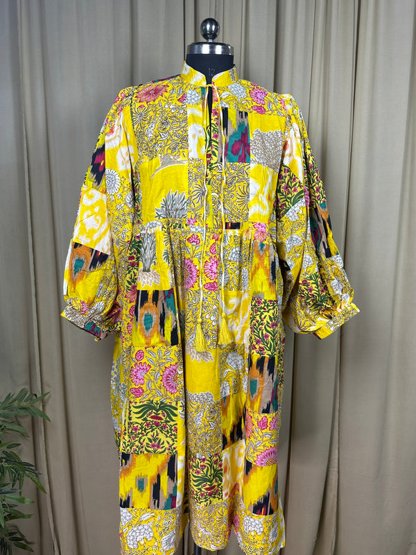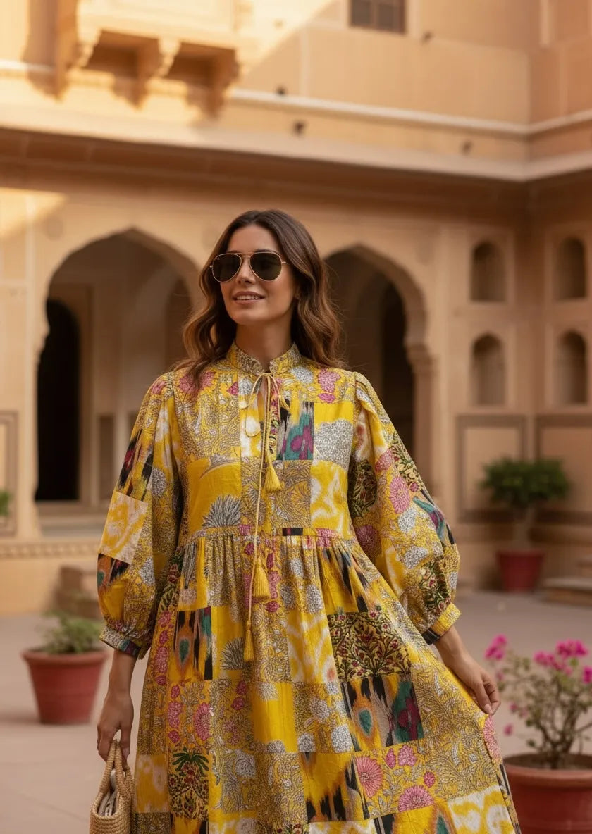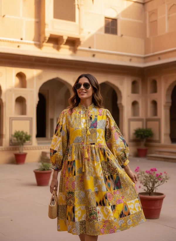Pure Cotton Patchwork Dress with Hand Block printing.