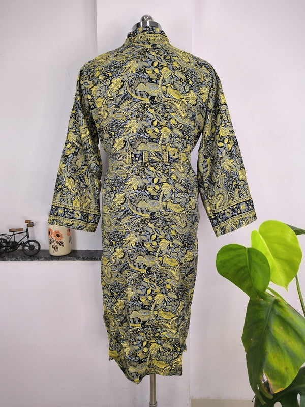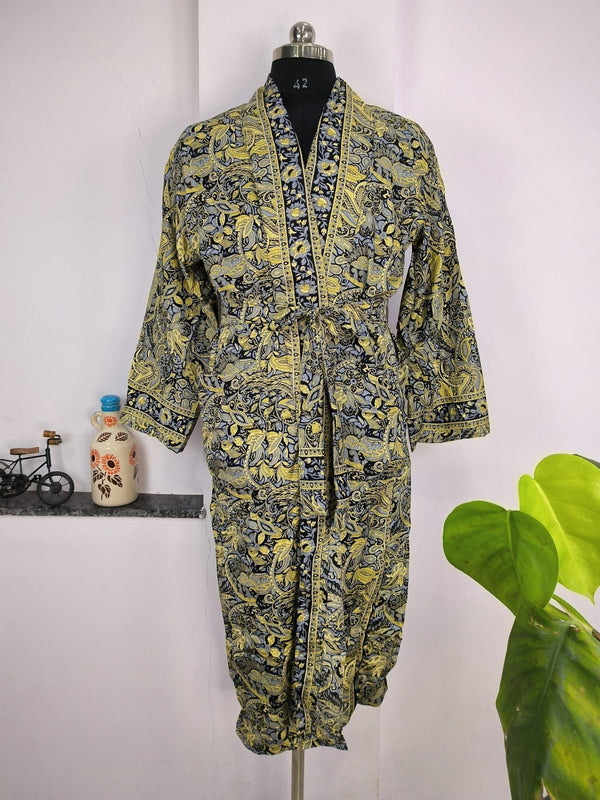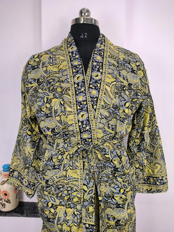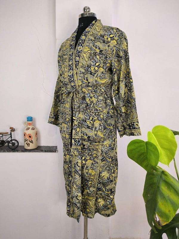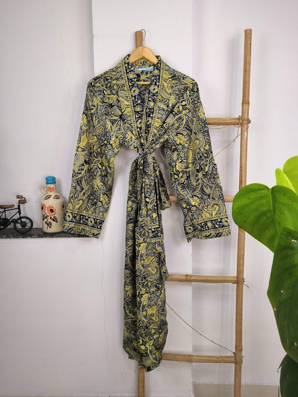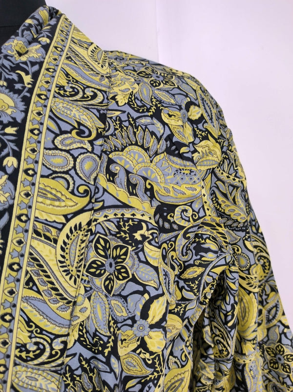Boho Herren Kimono aus weicher Seide, Strandmantel für Männer von Regal House, Persian King Paisley Elegante Blau-Gelb-Töne