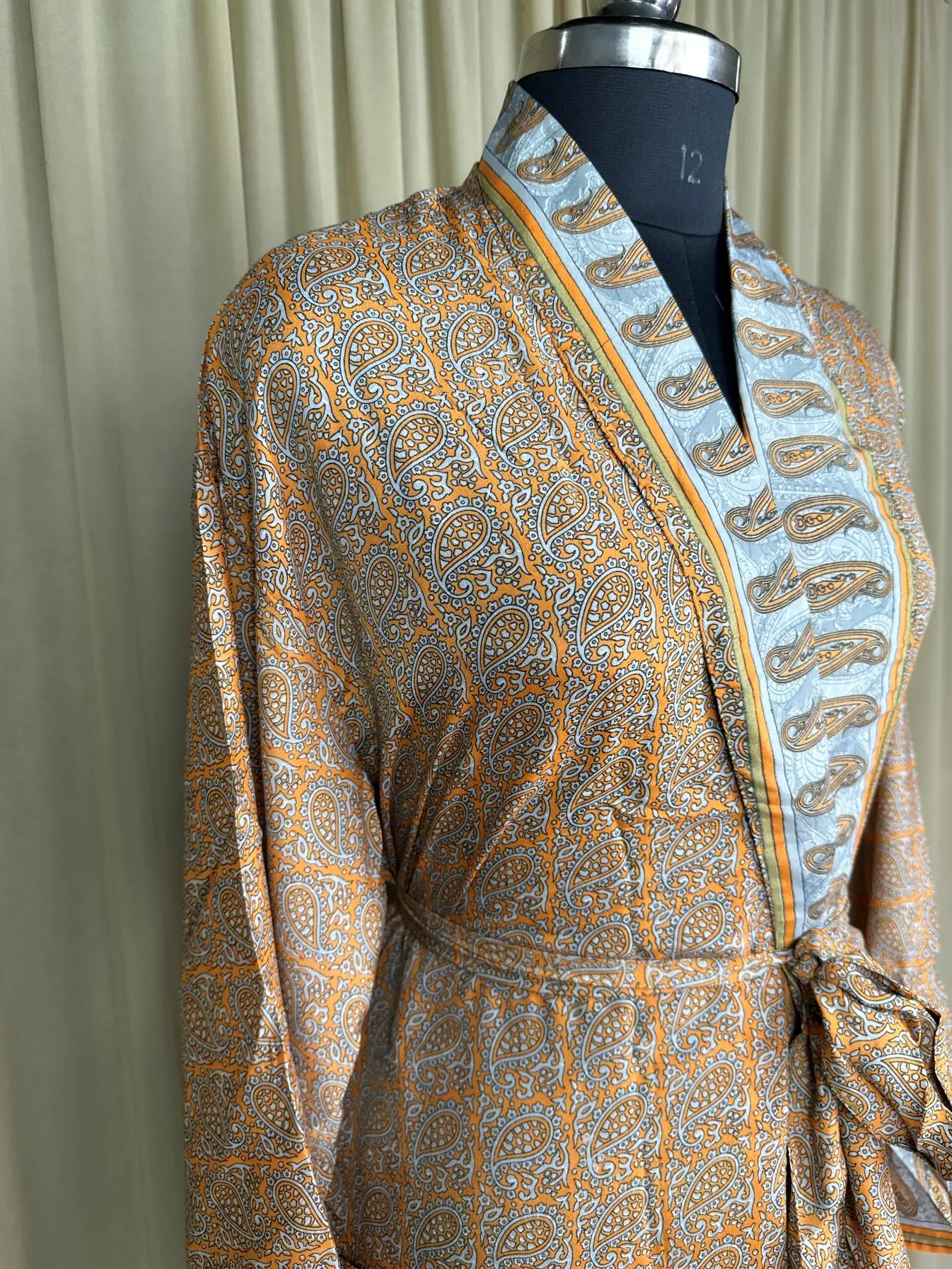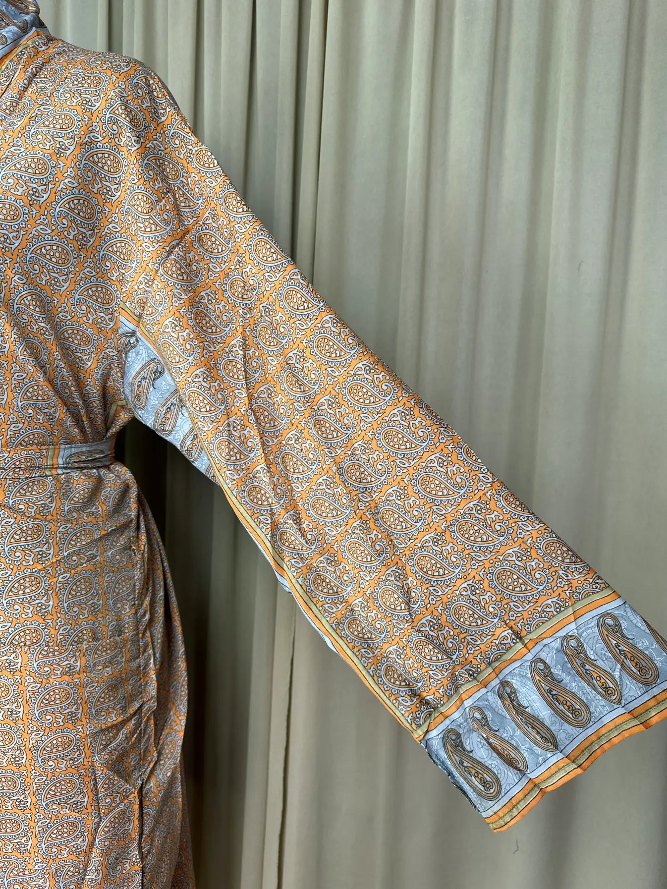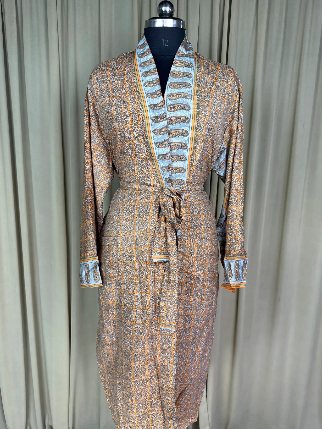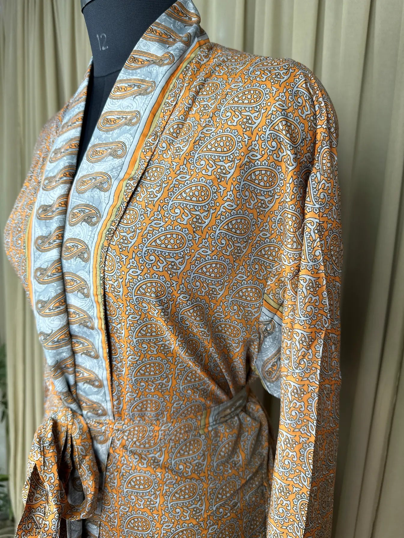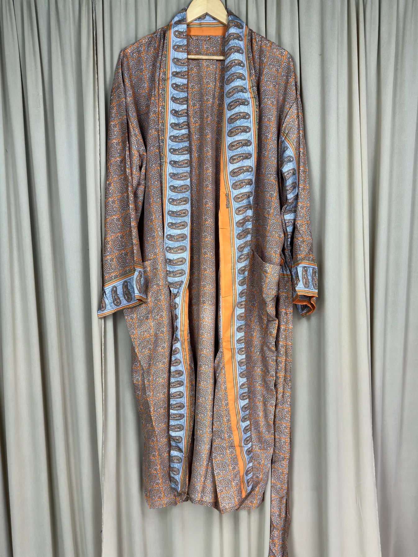 Silky Soft Men’s Kimono Robe, Masculine Elegant Classic Sustainable Vintage House Robe gift, Timeless Comfy Lounge Beach Wear Orange Paisley