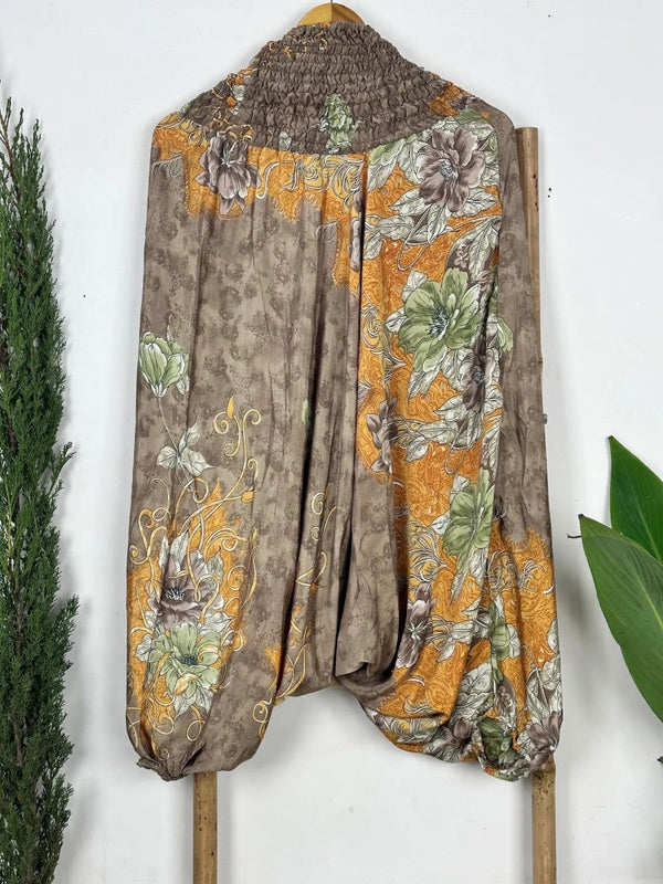 Recycler la soie Hareem Afgani Style Yoga Pantalon coupe décontractée | Pyjama de nuit indien super confortable Genie Drop unisexe Boho Hippie fait à la main