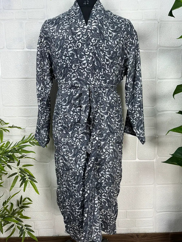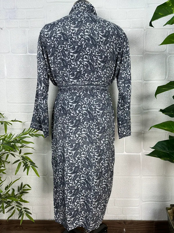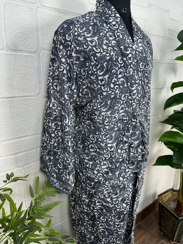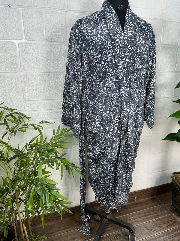 Boho Men Silk Kimono Robe, Luxury Silk Dressing Gown for Man, Long House Beach Artist Bathrobe, Birthday Present for husband, Gift for Him