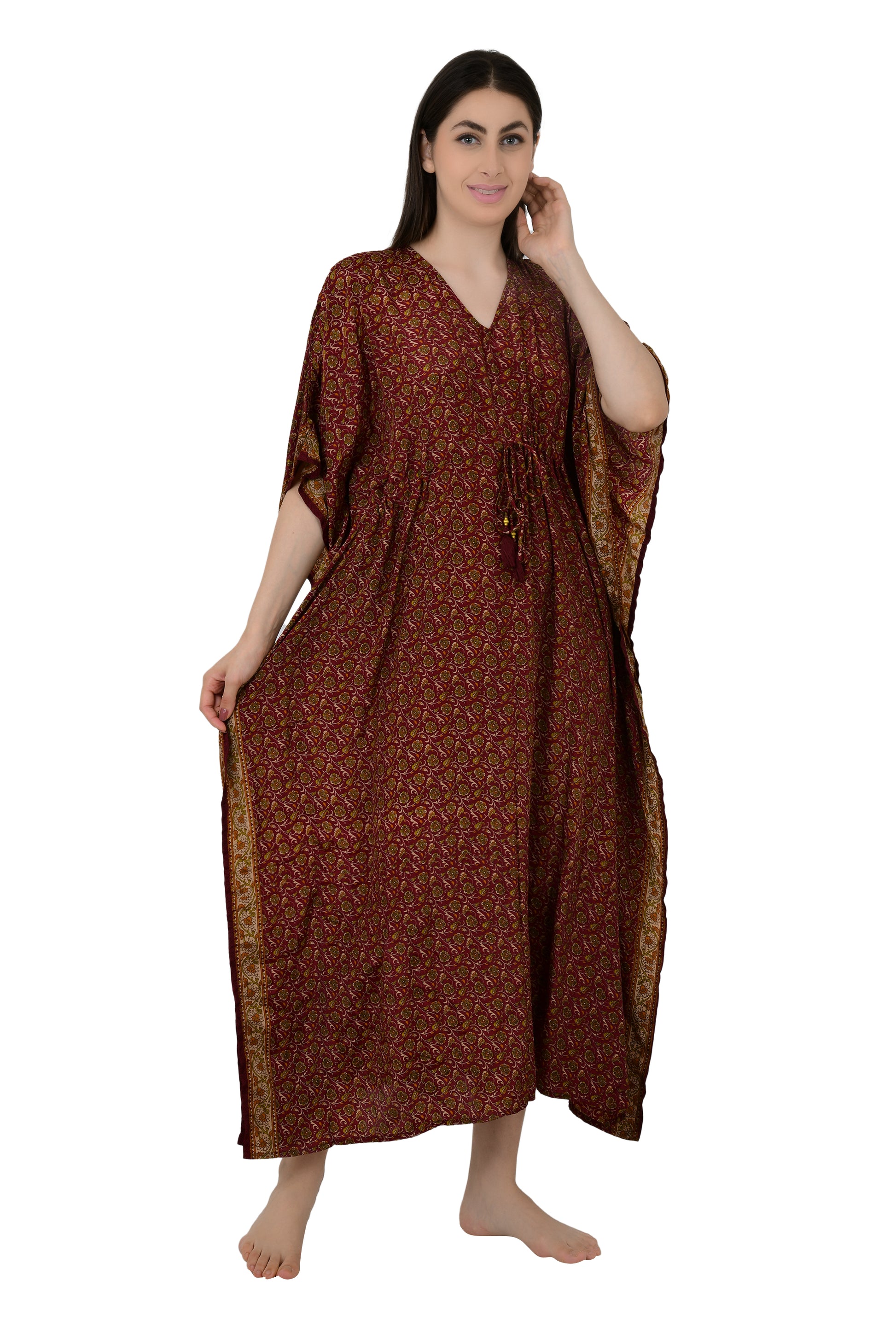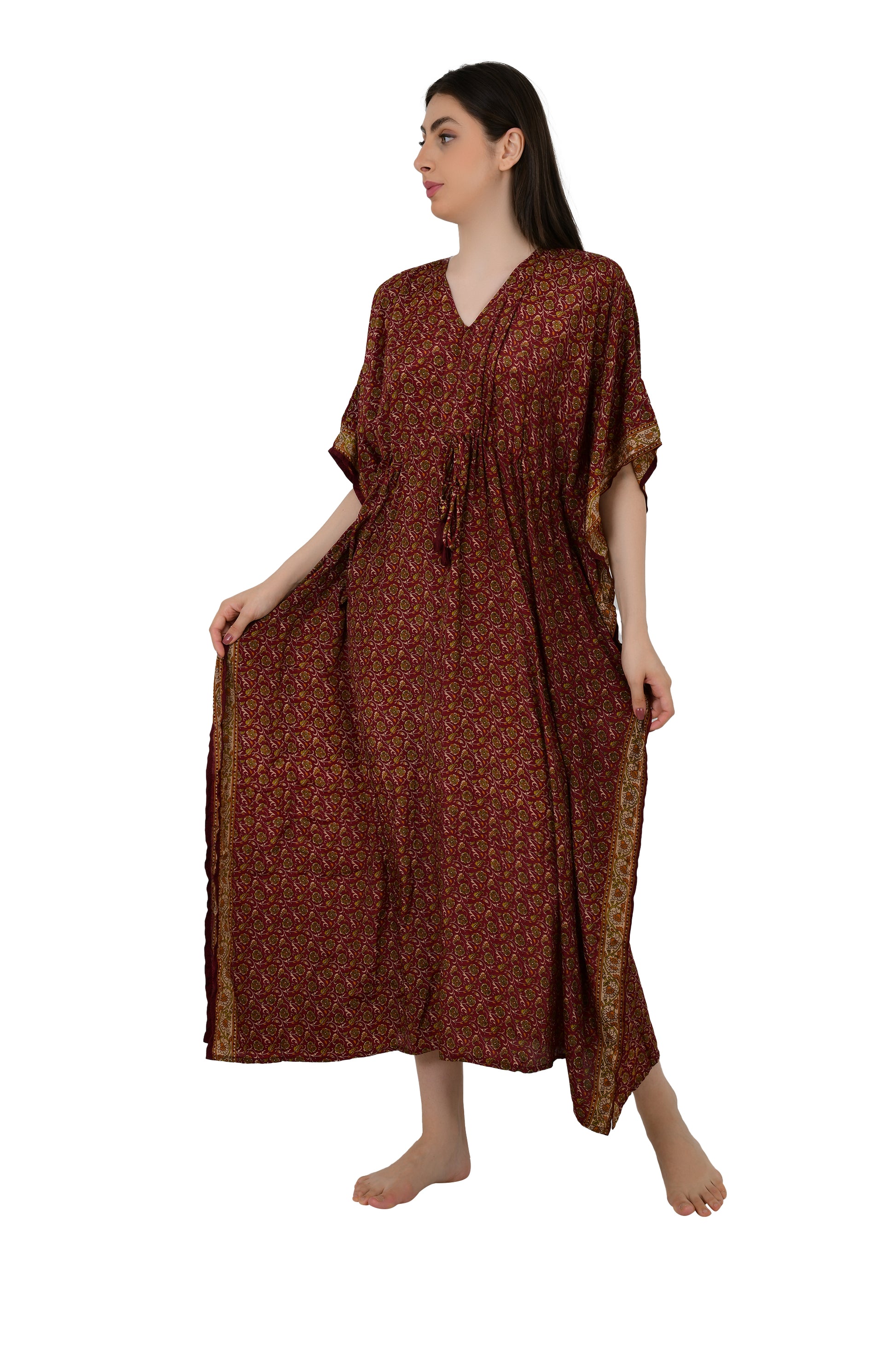 This beautiful Silky Blend Caftan is easy to care for, lightweight, flowy, and airy, offering an effortlessly stylish and urban flair. Pair it with a blazer and statement earrings for an elegant evening look. Perfect for occasions like a hen's night party, beachwear, or simply for lounging at home.