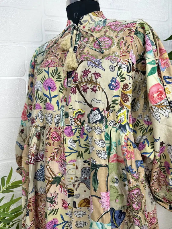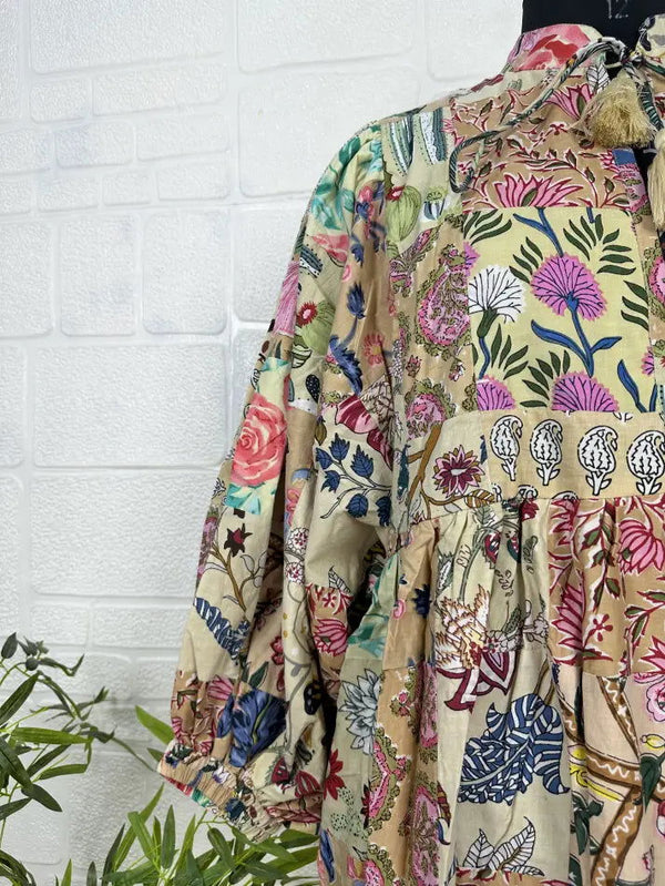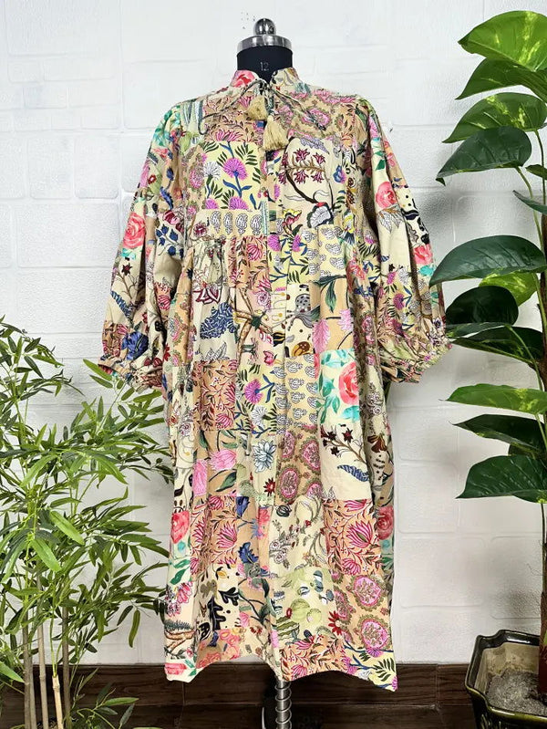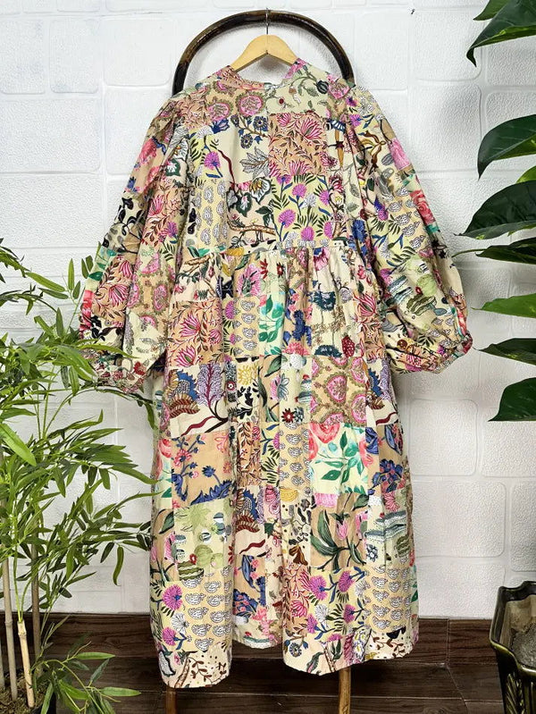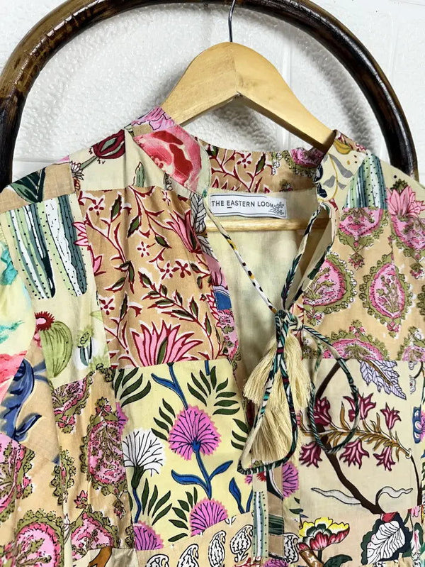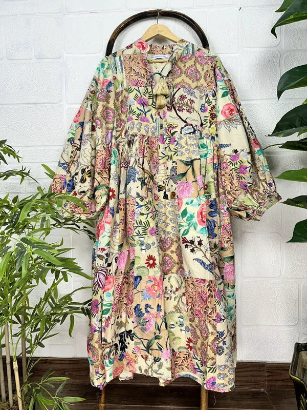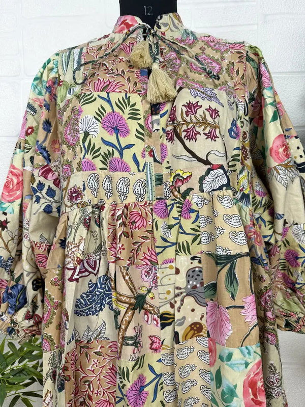 ASSORTIS - TEINTES JAUNES | Robe en coton patchwork cousue à la main | Cadeau de Noël d’anniversaire parfait pour sa sœur mère |