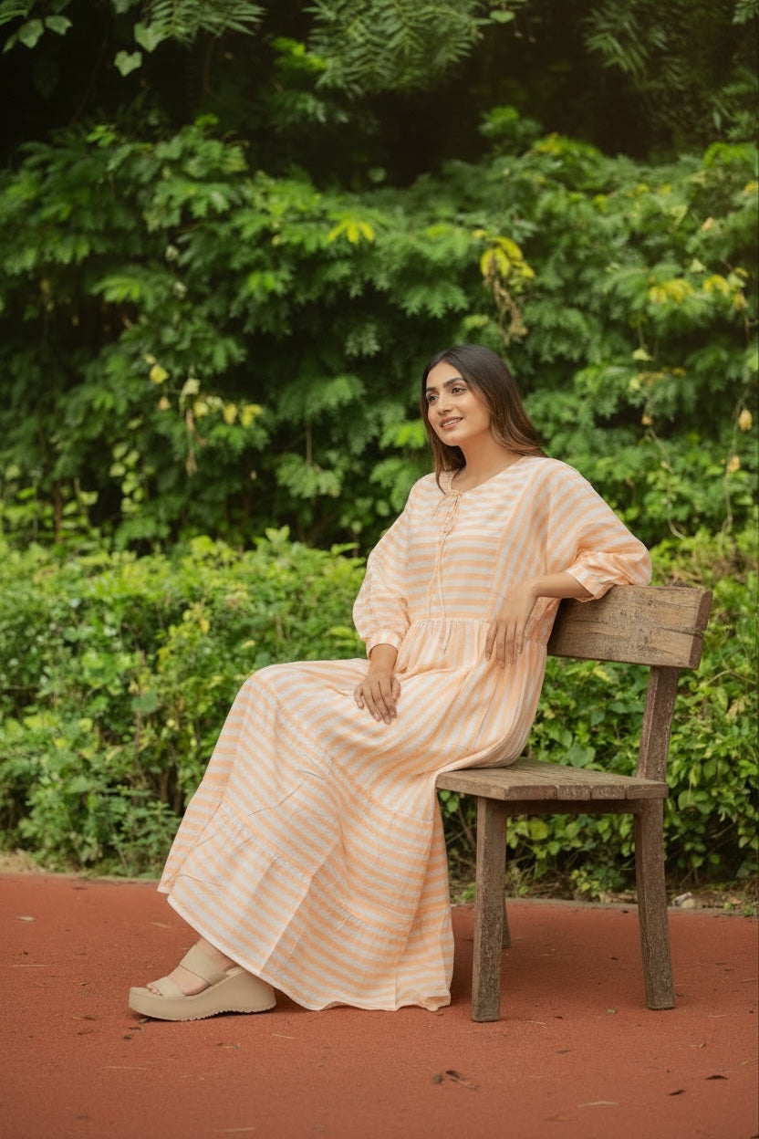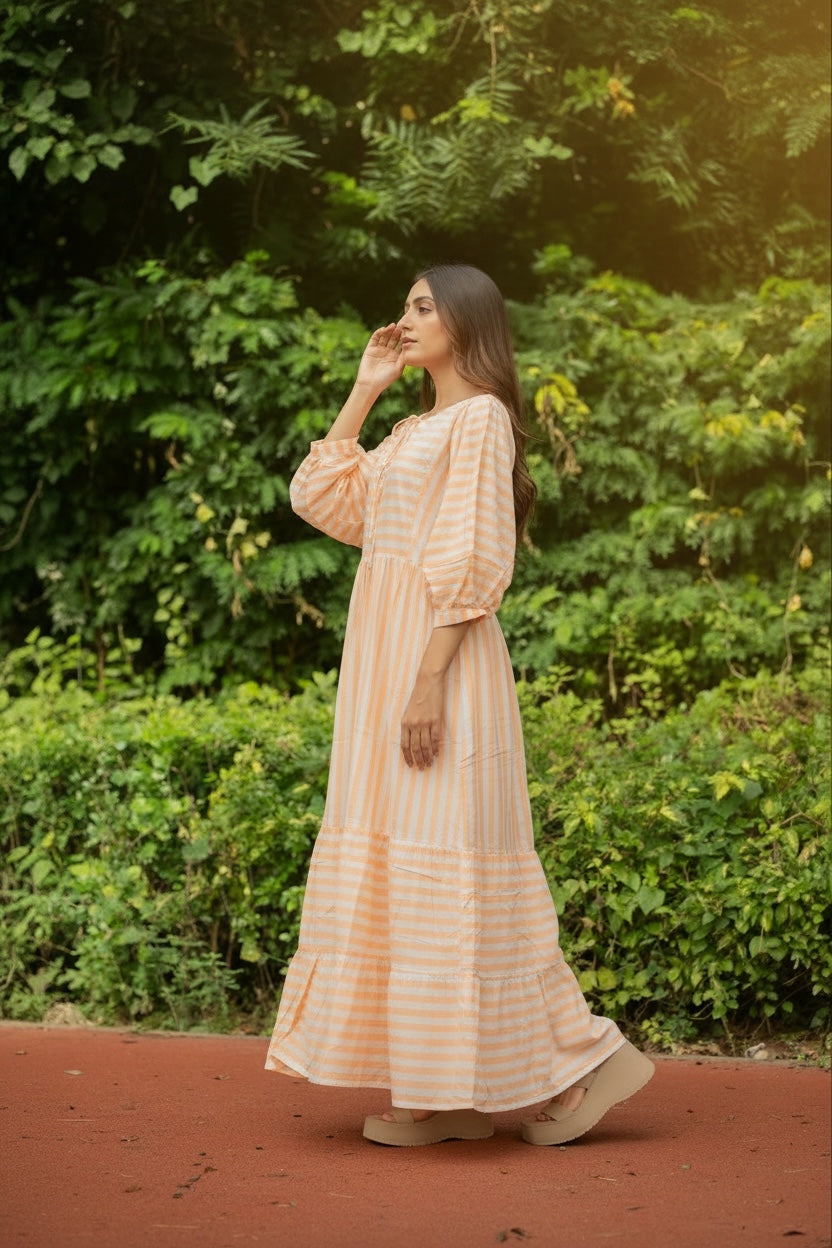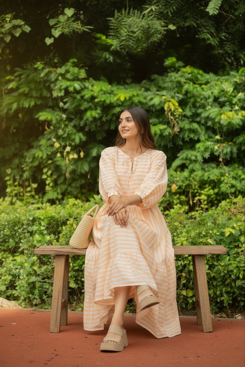 Each piece carries the magic of traditional block printing, handcrafted using wooden blocks and natural dyes in the small villages of Rajasthan. Generations of artistry flow into every motif, making each dress beautifully unique.