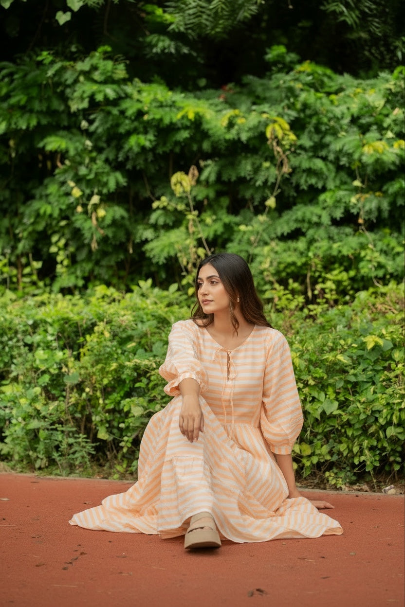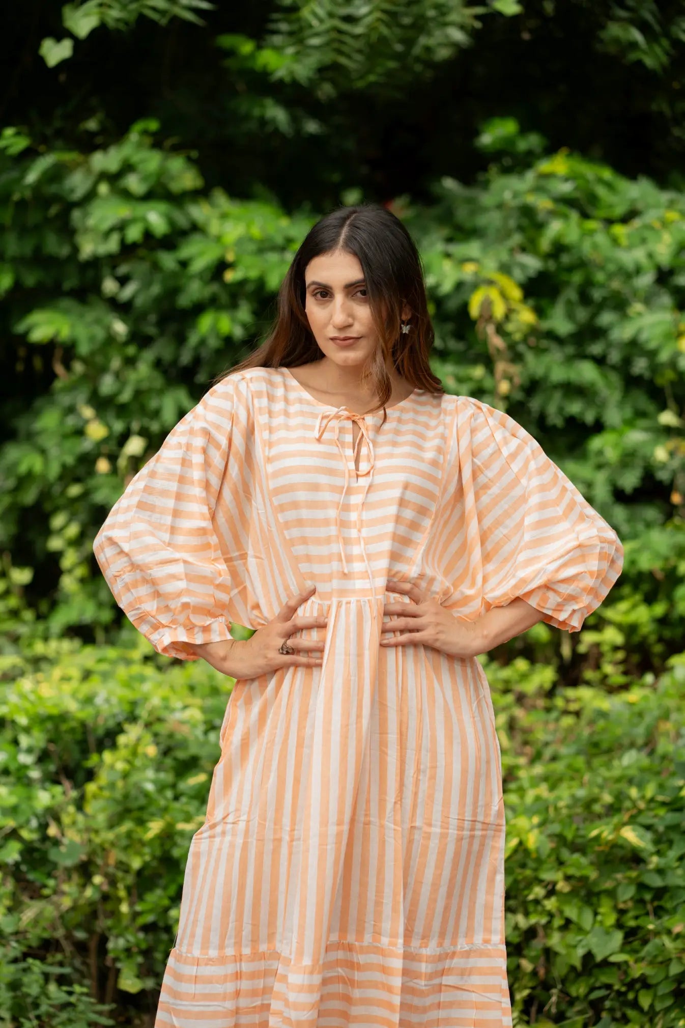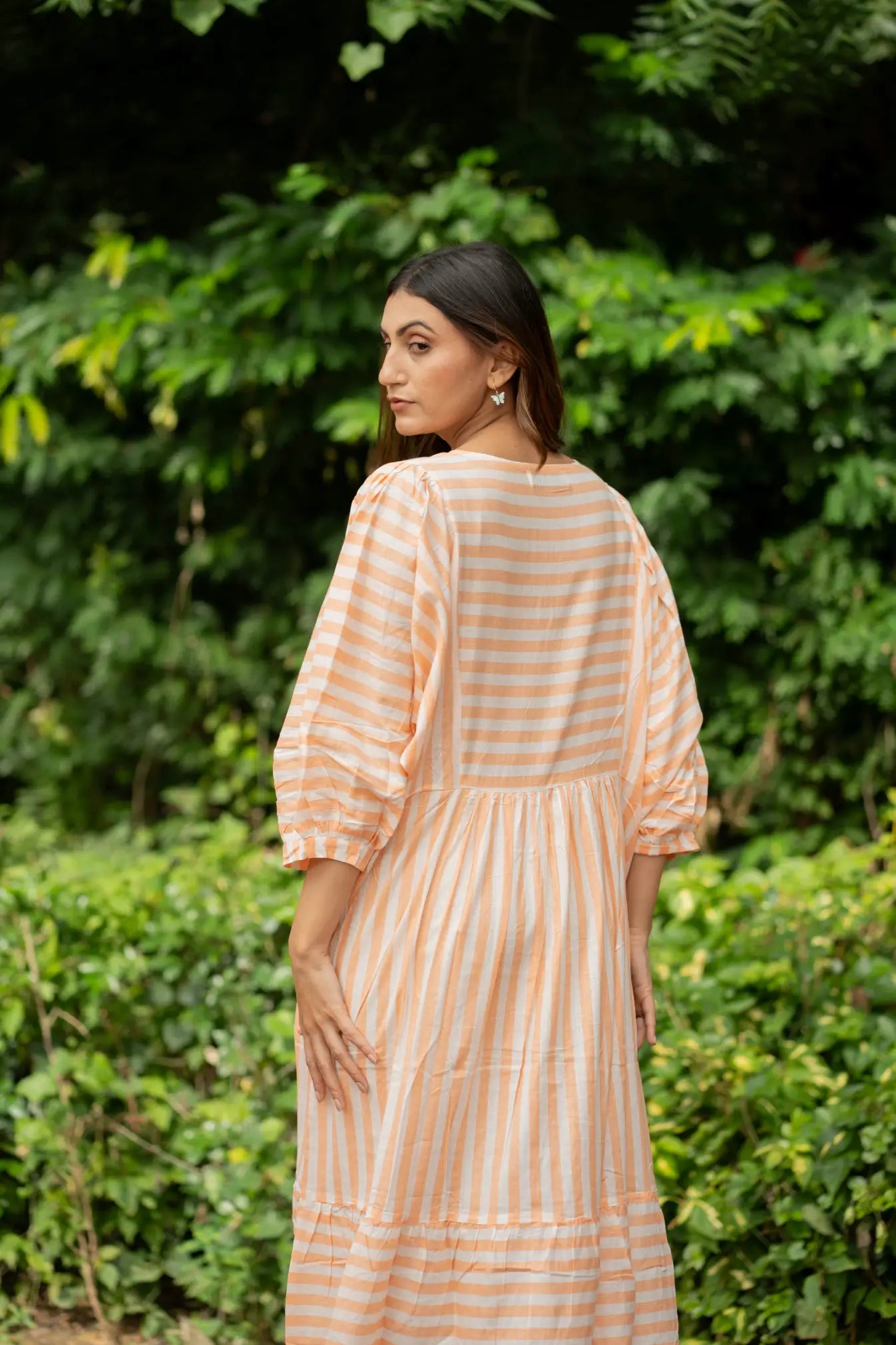 Cotton Midi Dress Stripe Hand Block Print | Boho Summer Sundress with Pockets, Artisan Style Beach Vacation Wear, Bridesmaid Gift for Her