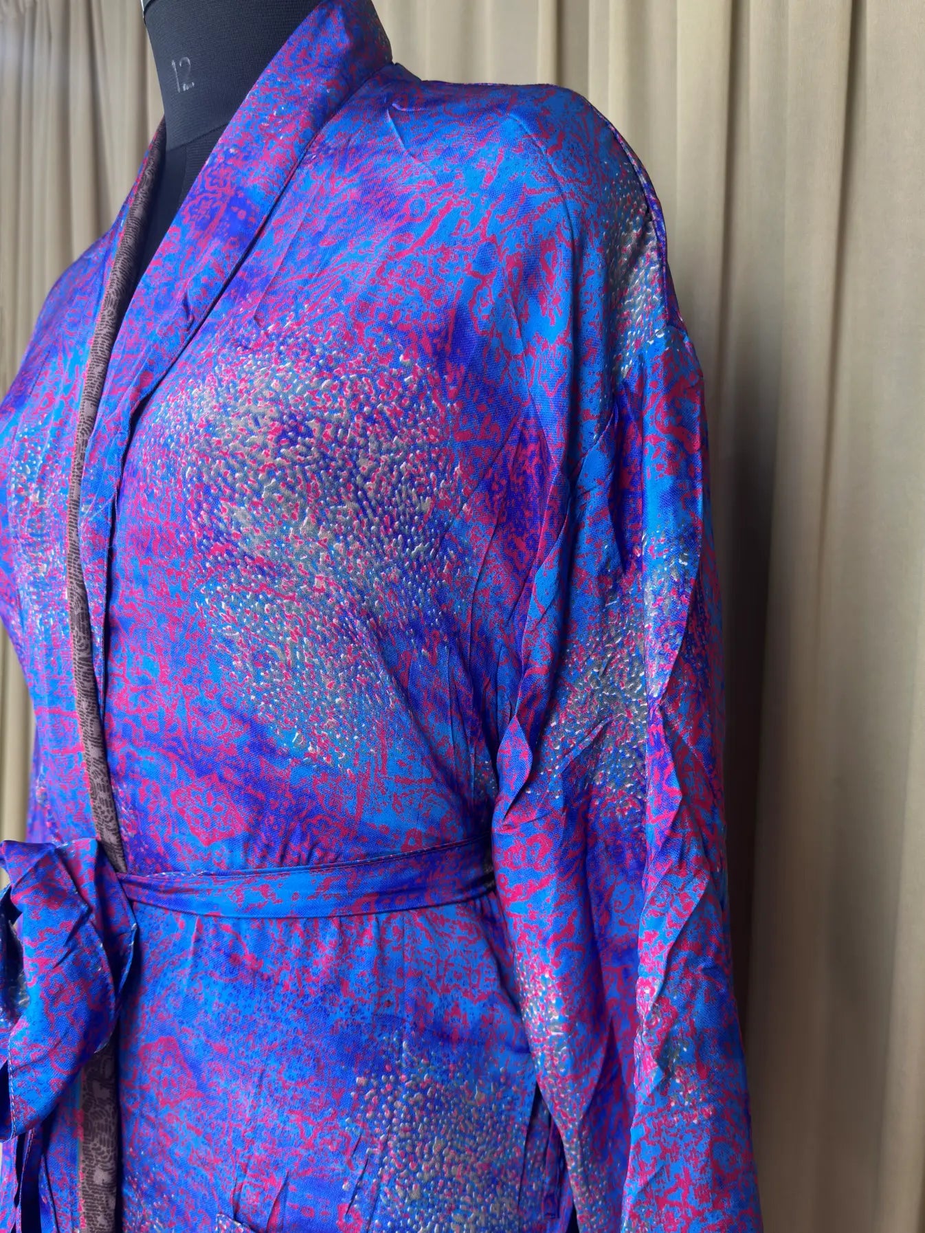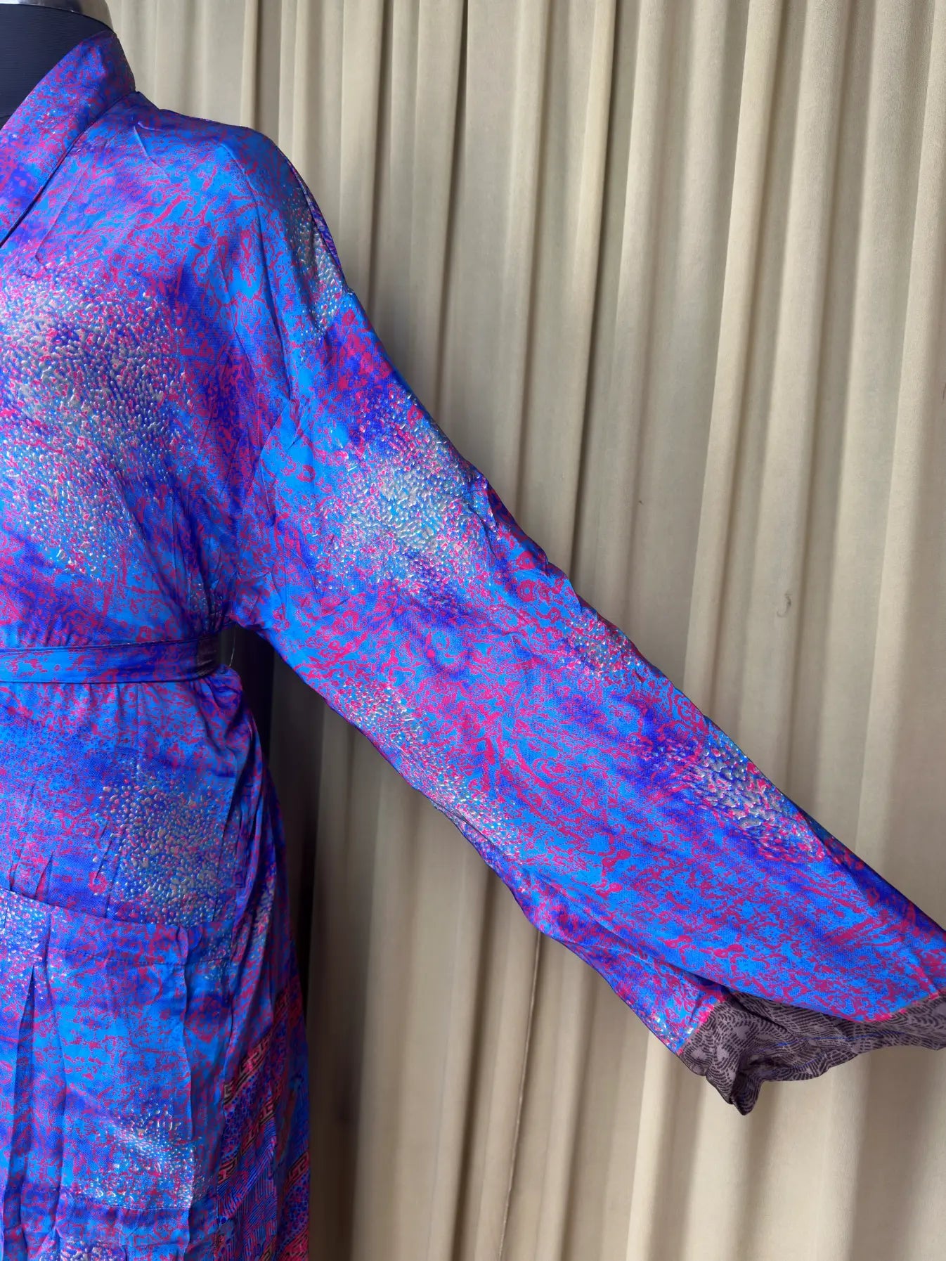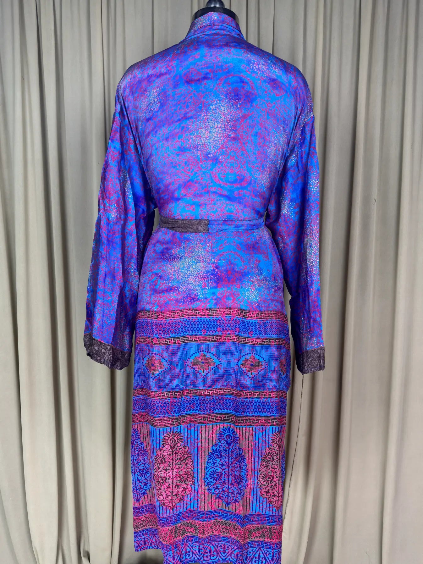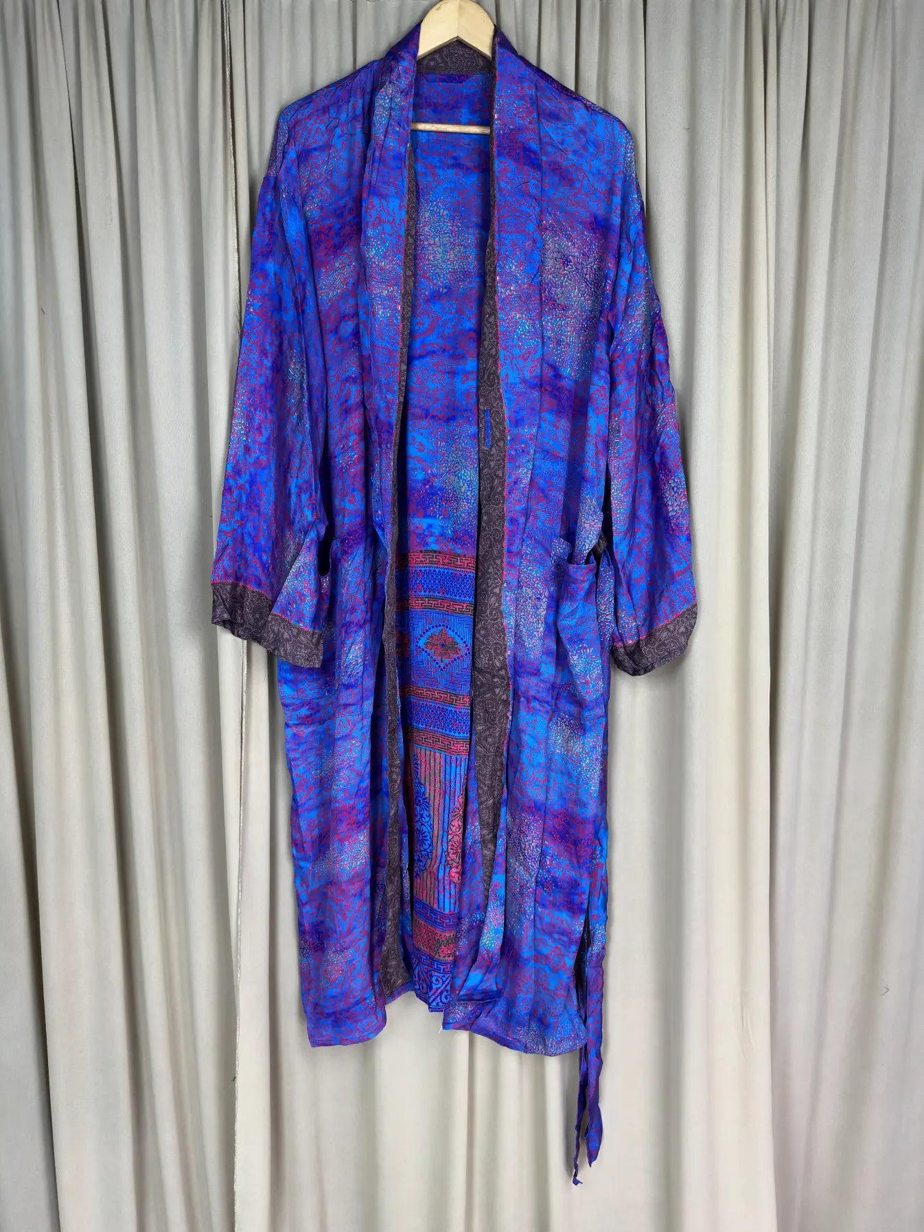 Created with the finest attention to detail, this robe is a symbol of timeless elegance and sophistication. Made from the upcycled silk sari, it offers a sumptuous soft feel against your skin, enveloping you in pure comfort and indulgence.