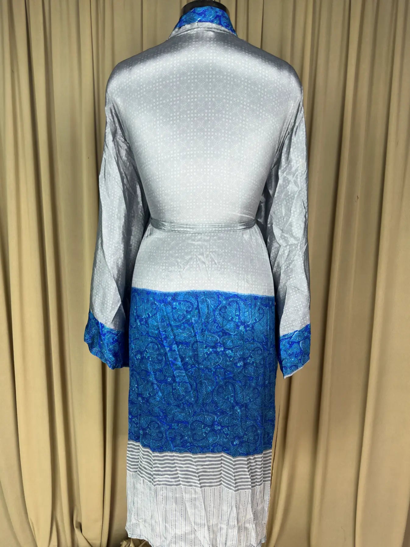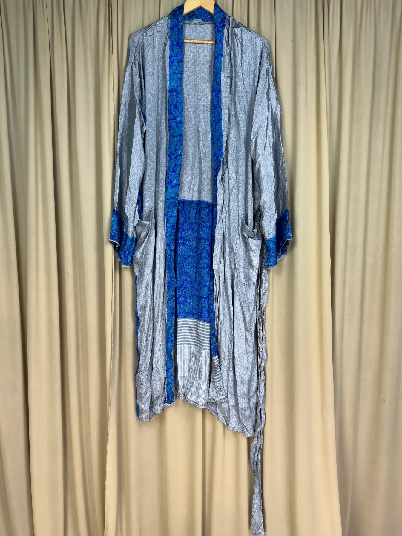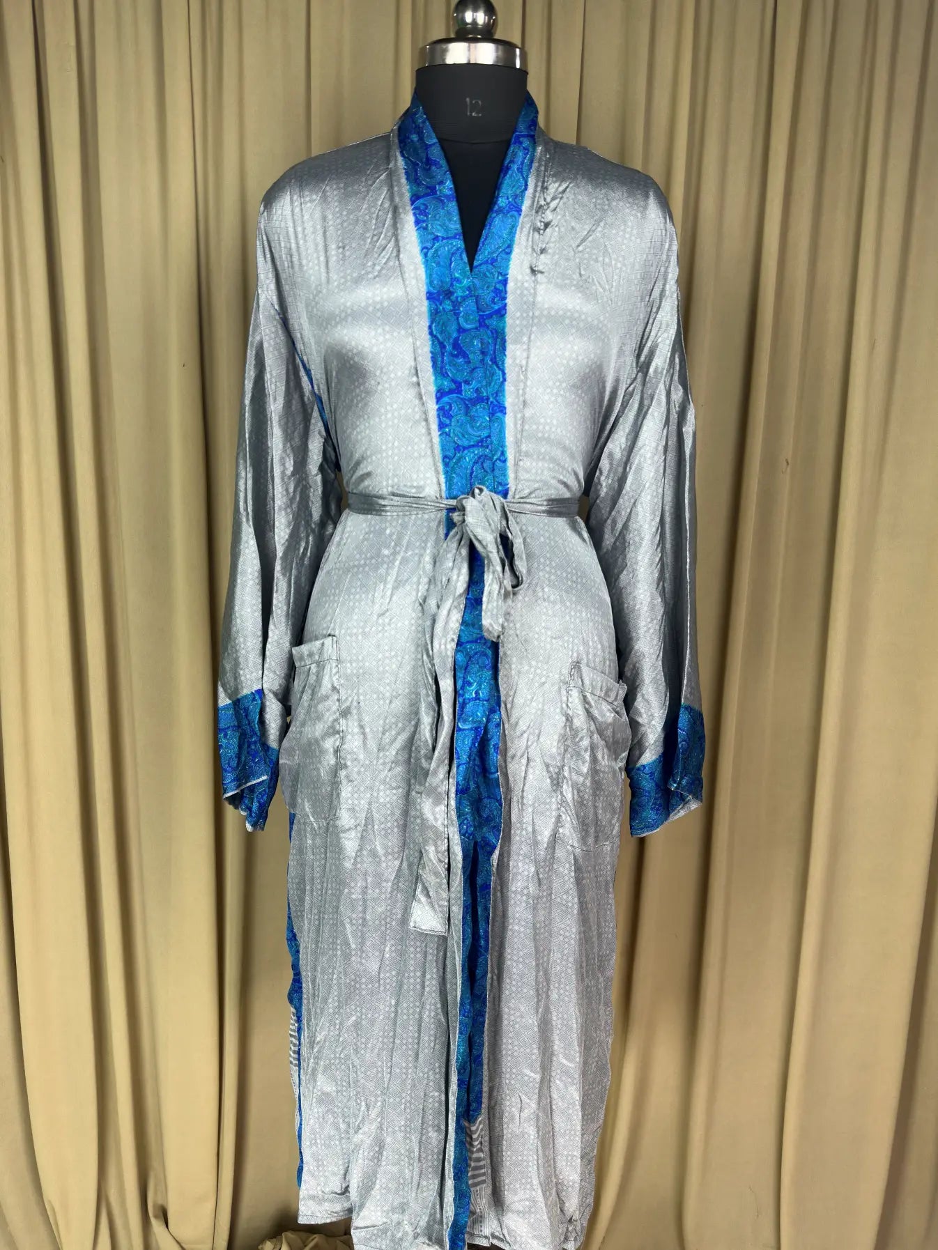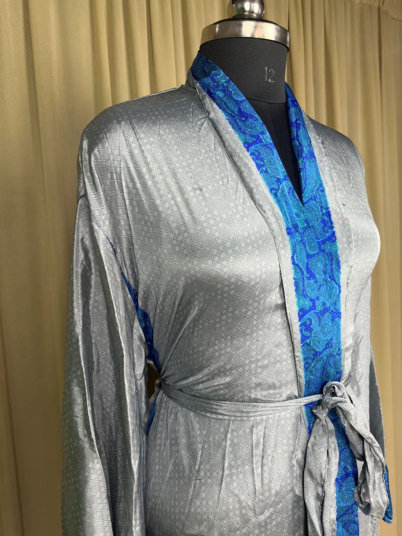 Created with the finest attention to detail, this robe is a symbol of timeless elegance and sophistication. Made from the upcycled silk sari, it offers a sumptuous soft feel against your skin, enveloping you in pure comfort and indulgence.