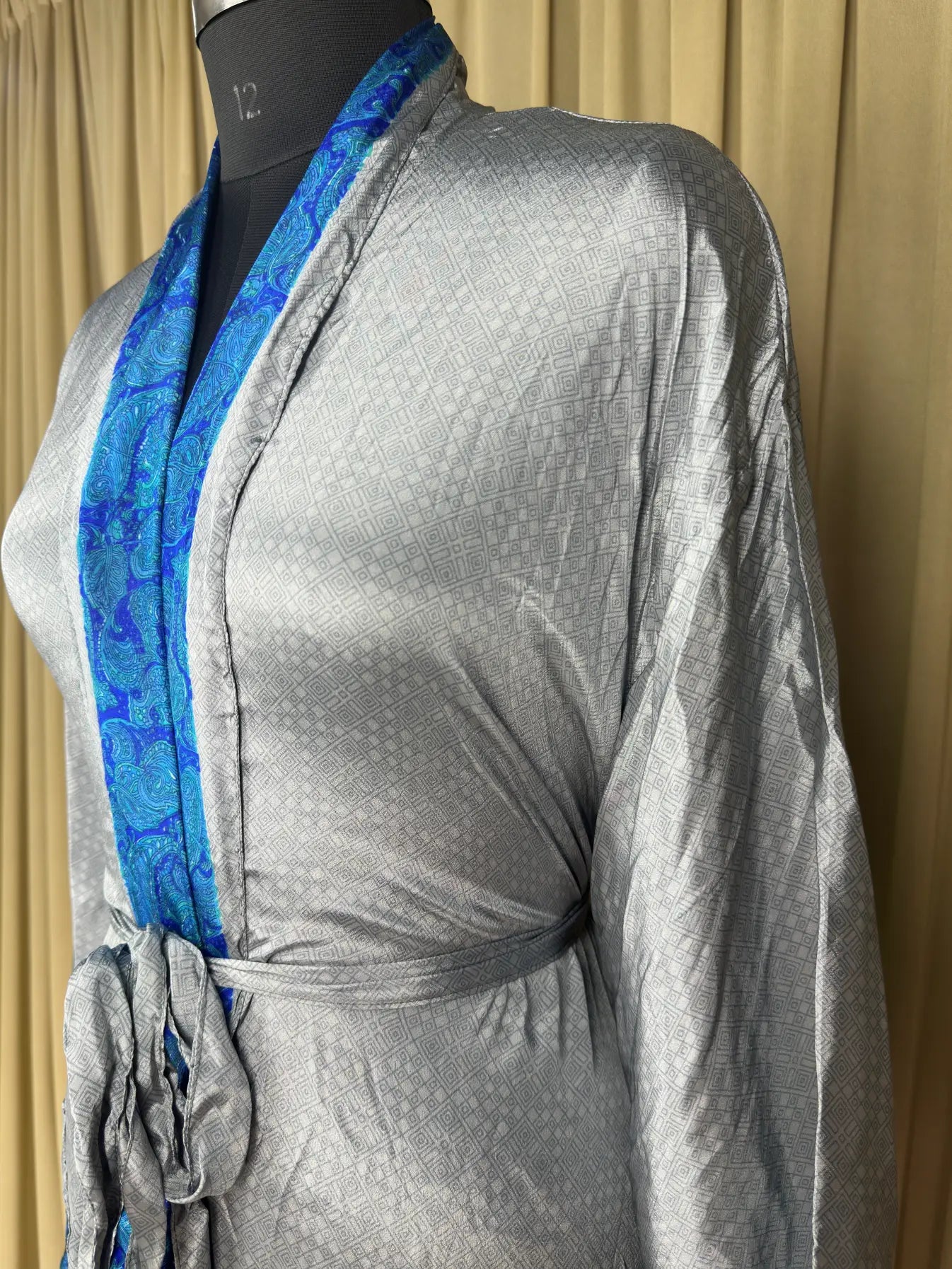 Silky Soft Men’s Kimono Robe, Masculine Elegant Classic Sustainable Vintage House Robe gift, Timeless Comfy Lounge Beach Wear Gray Geometric
