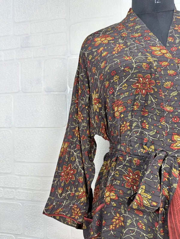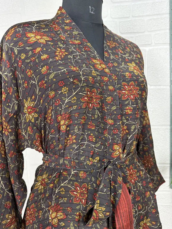 Design: Traditional kimono-inspired cut with long sleeves and a beautiful floral or abstract pattern.