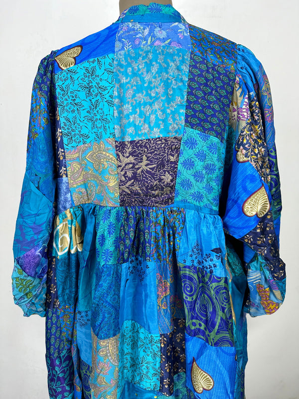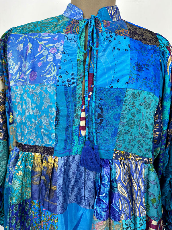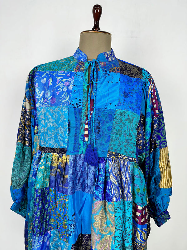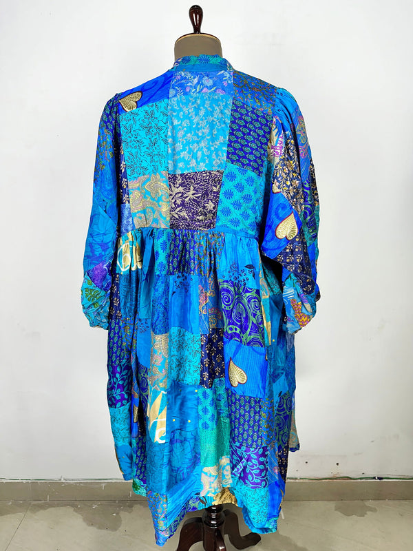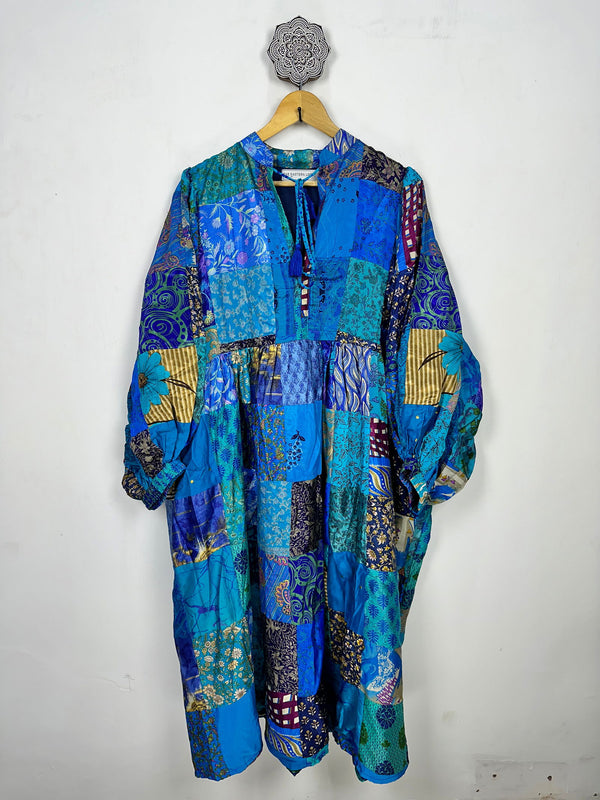 ASSORTED - BLUE HUES | Hand Stitched Patchwork Silk Dress | Perfect Anniversary Christmas Gift For Her Sister Mother |