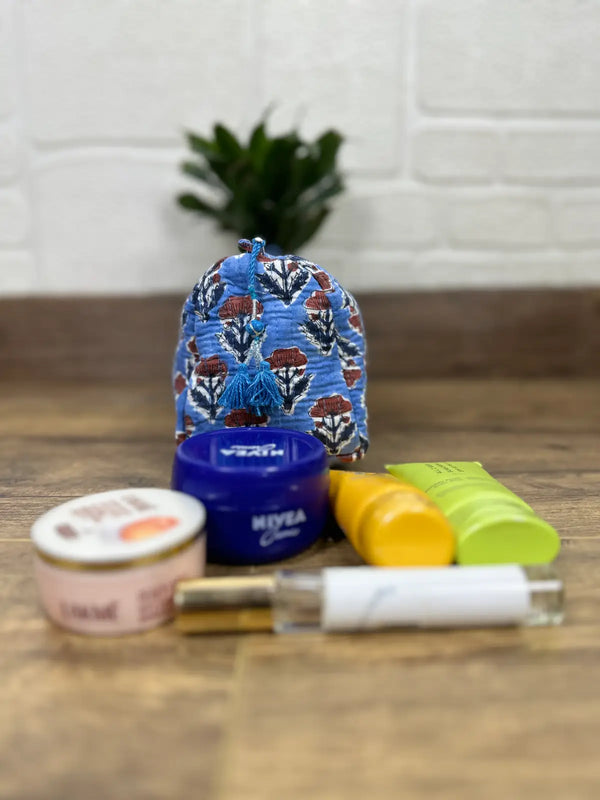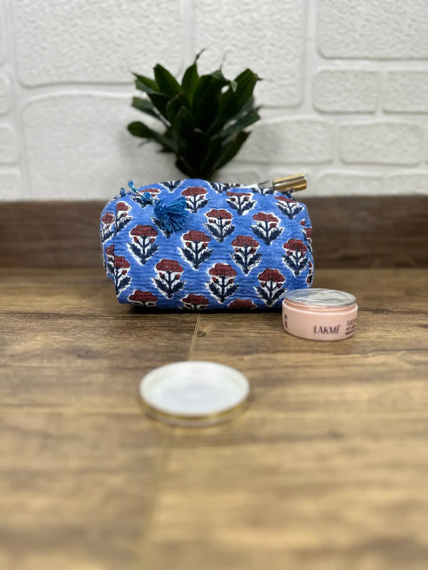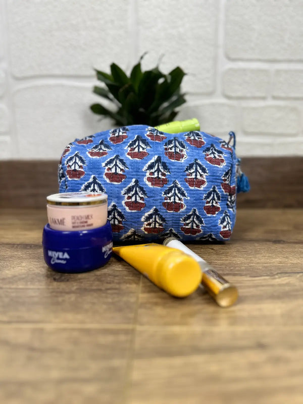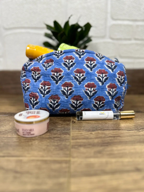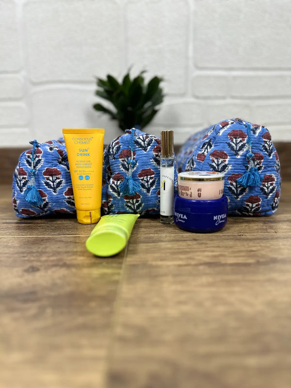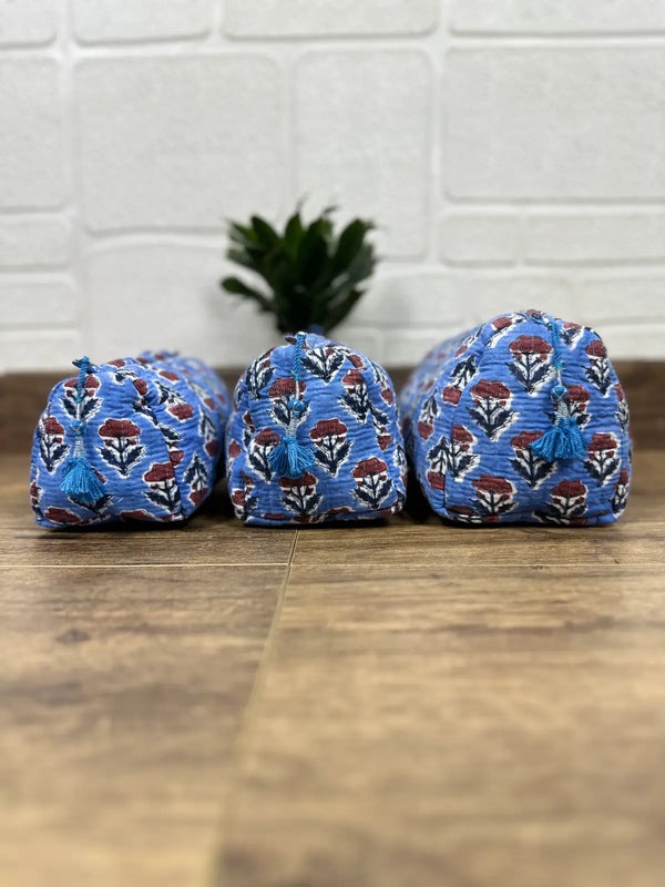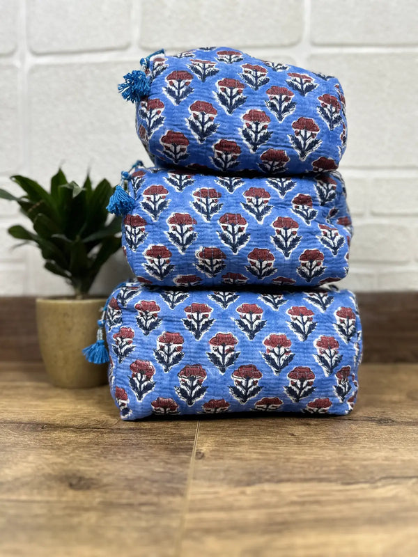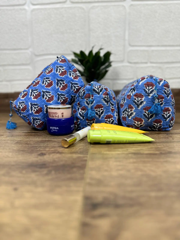 Block Print Toiletry & Makeup Bag | Quilted Wash Bag | Set of 3
