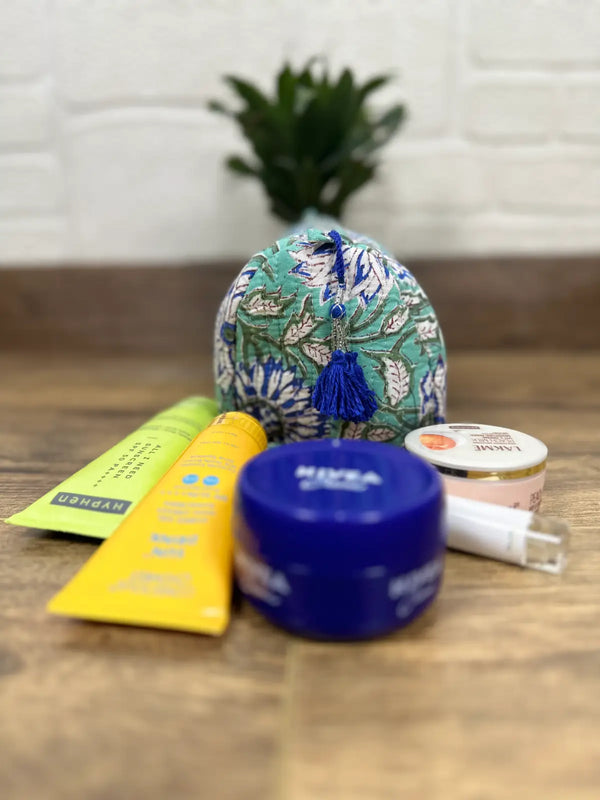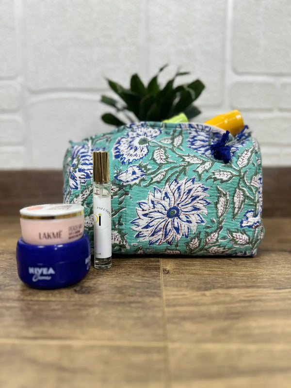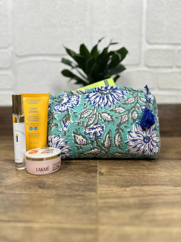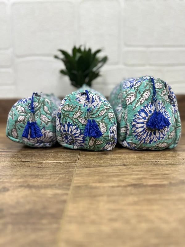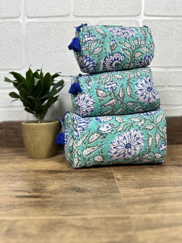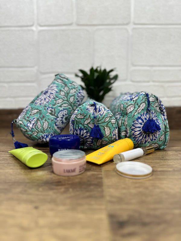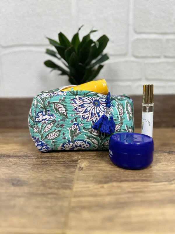 Block Print Toiletry & Makeup Bag | Quilted Wash Bag