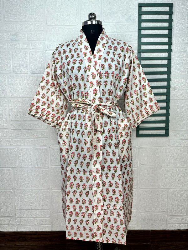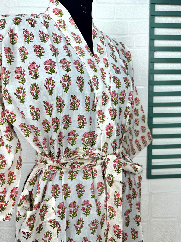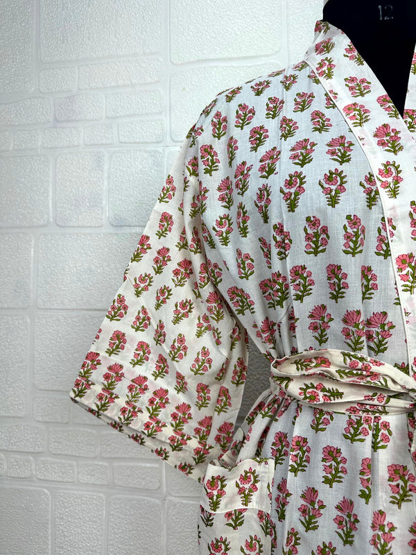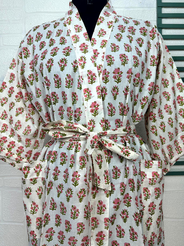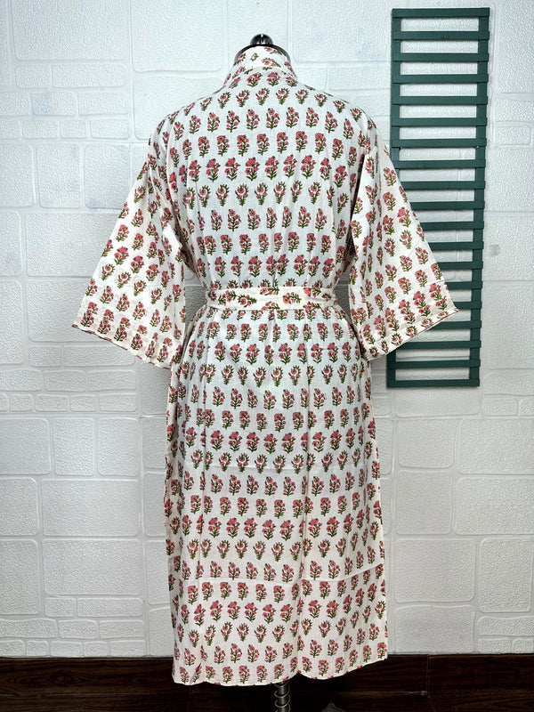 Boho Cotton Kimono House Robe Indian Handprinted Butterfly Floral Print Pattern | Lightweight Summer Luxury Beach Holidays Yacht Cover Up Stunning Dress