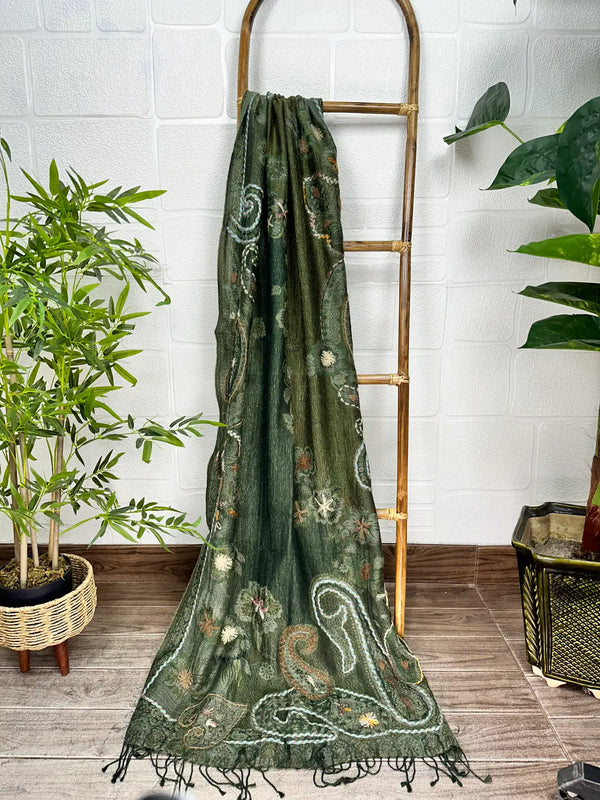 Hand Embroidered Suzani Shawl / Stole / Scarf Handwoven Warm Cozy Wrap Pure Wool Light Weight Soft Wrap Christmas Gift