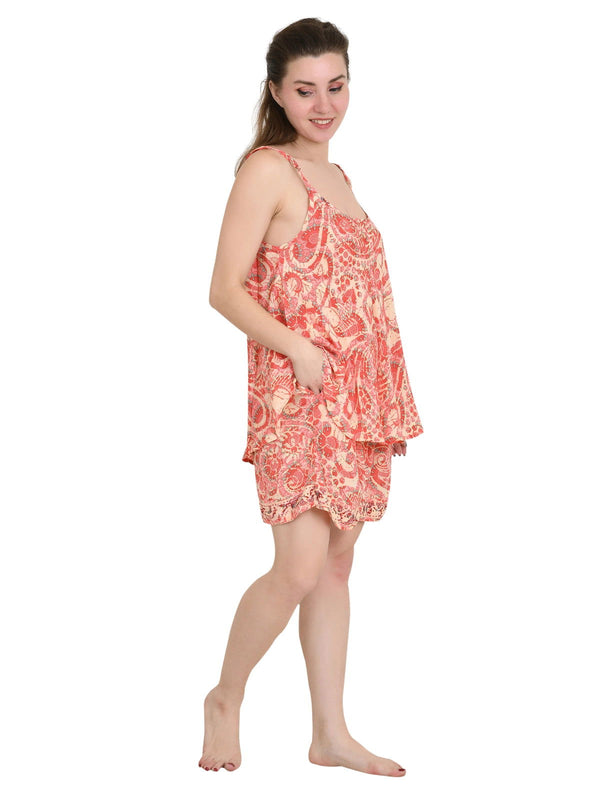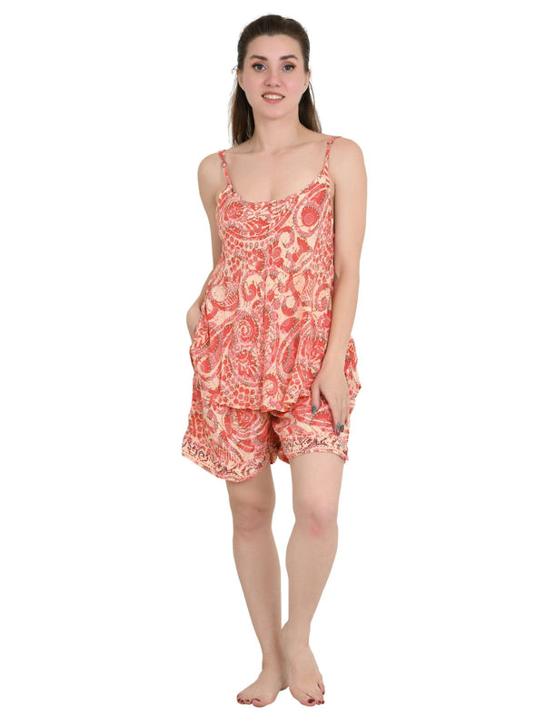Silky Sari Pyjama Kimono Cami Top Boxer Set of 3 Night Suit Sleep Wear Luxury Lounge Boho Dress Royal Beach Cover Up Floral Paisley Cardigan Gift For Her