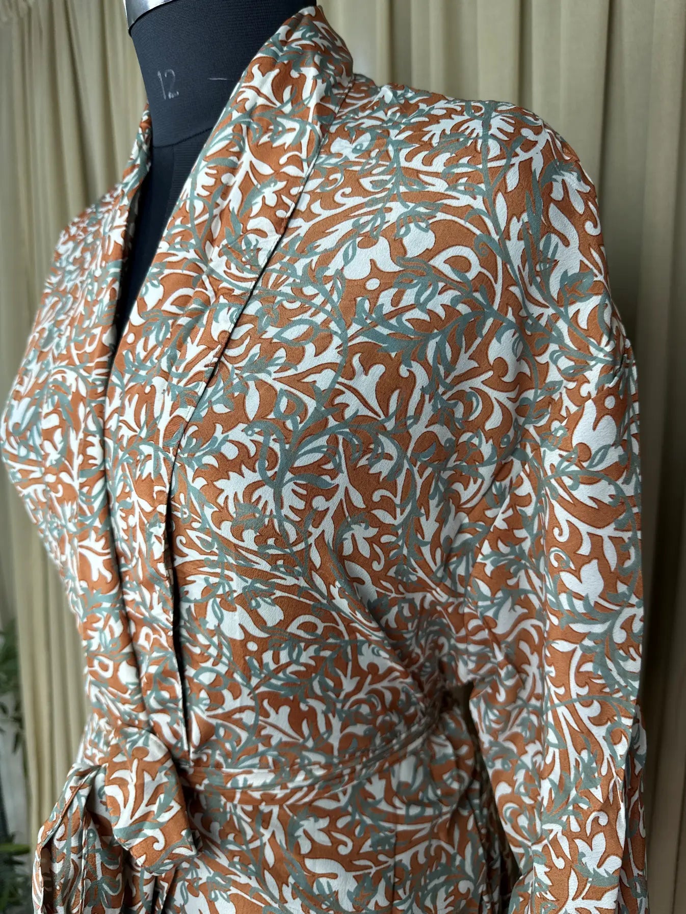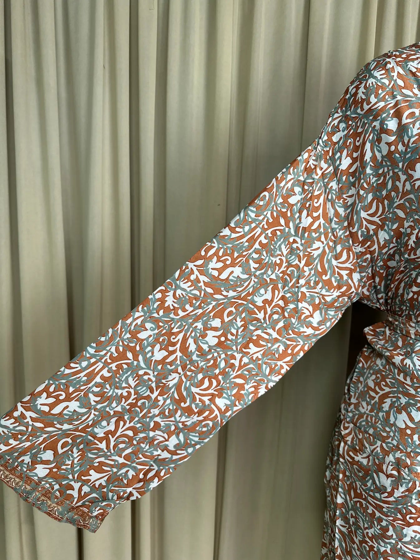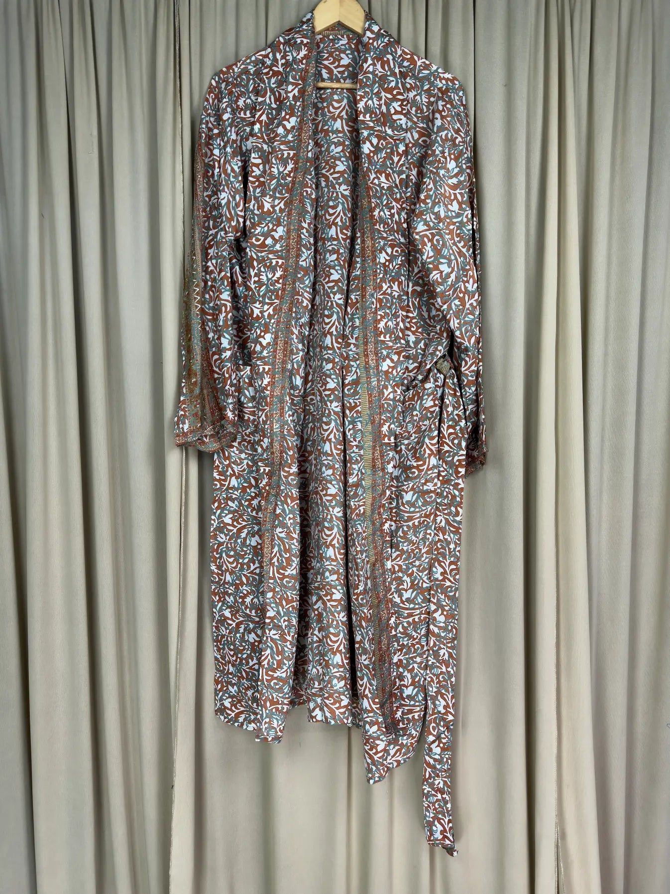 Created with the finest attention to detail, this robe is a symbol of timeless elegance and sophistication. Made from the upcycled silk sari, it offers a sumptuous soft feel against your skin, enveloping you in pure comfort and indulgence.
