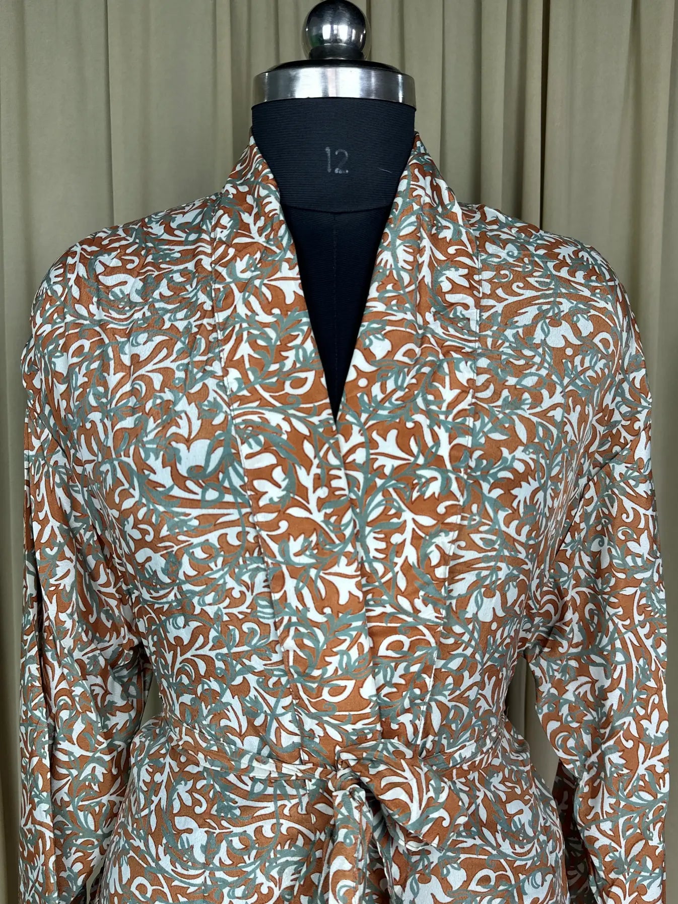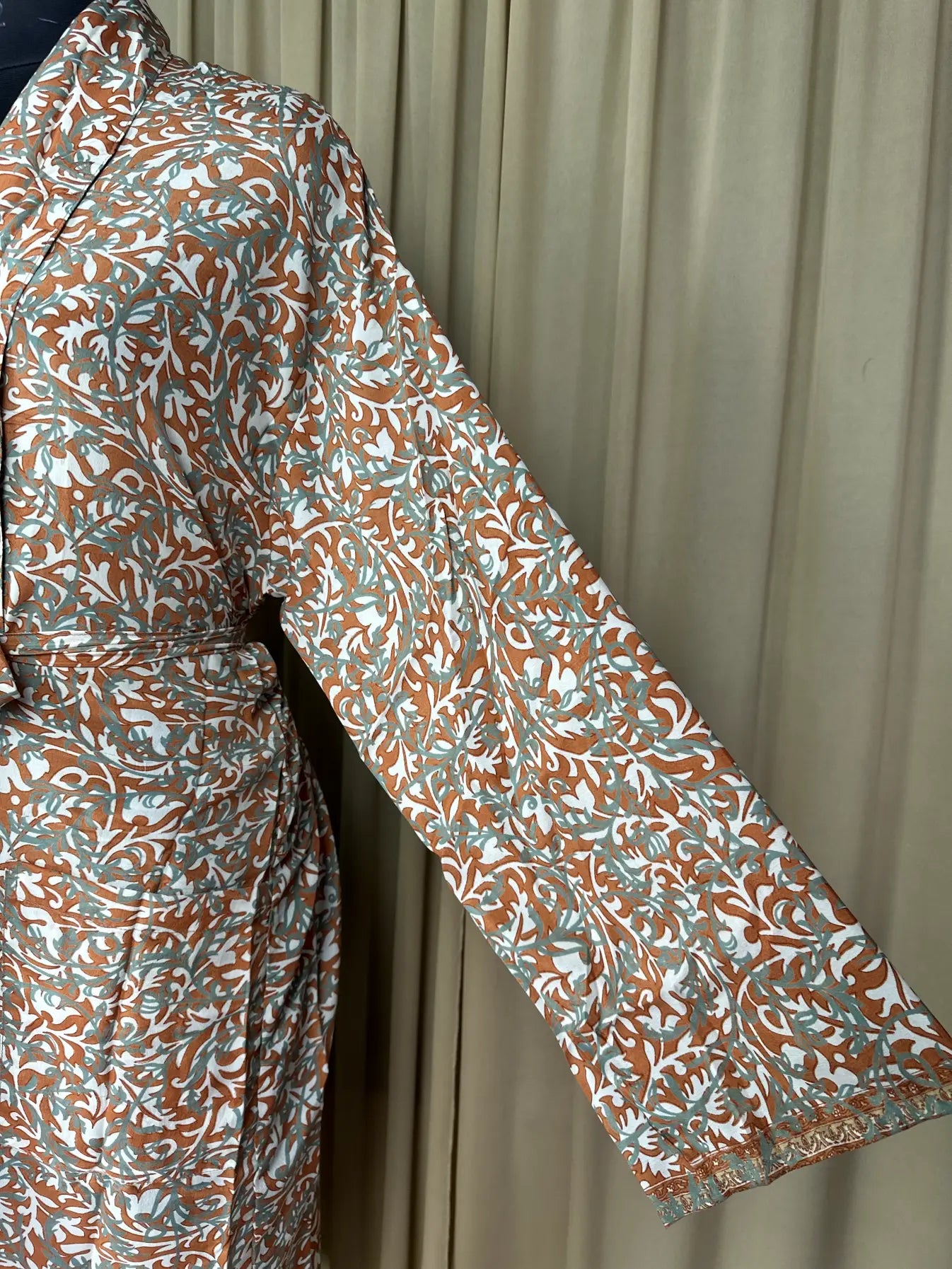 Silky Soft Men’s Kimono Robe | Masculine Elegant Classic Sustainable Vintage House Robe gift, Timeless Comfy Lounge Beach Wear Orange Floral