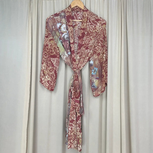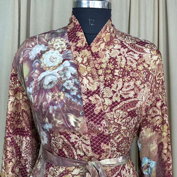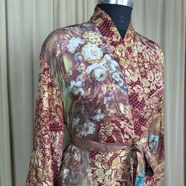Vintage Silk Sari Boho Kimono | Luxury Loungewear House Robe Flowy Gown, Regal Floral Romance Duster Beach CoverUp, Bridesmaid Dressing Gown