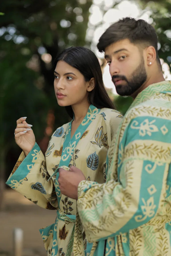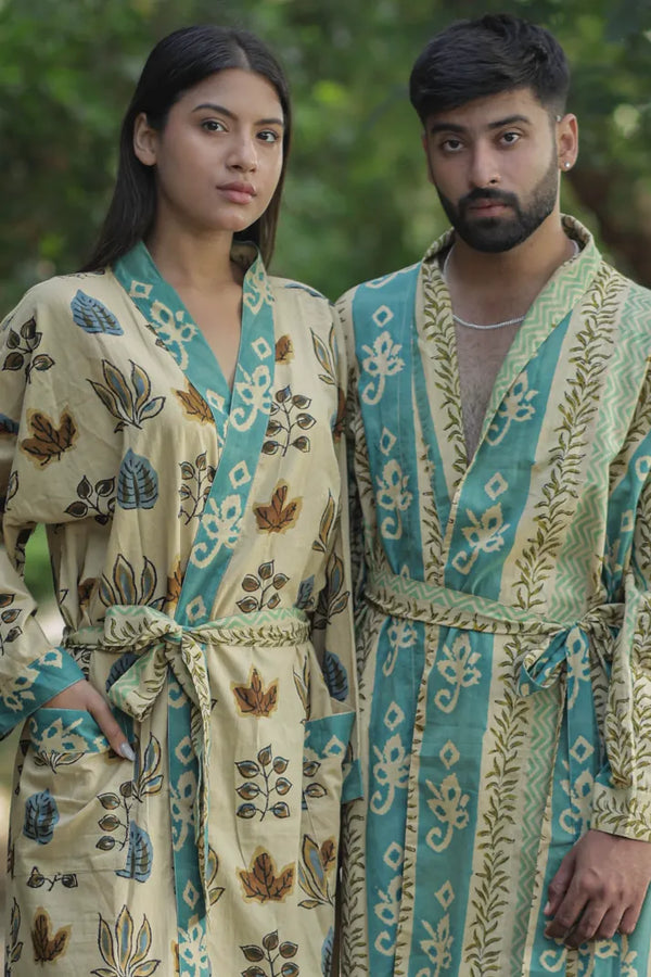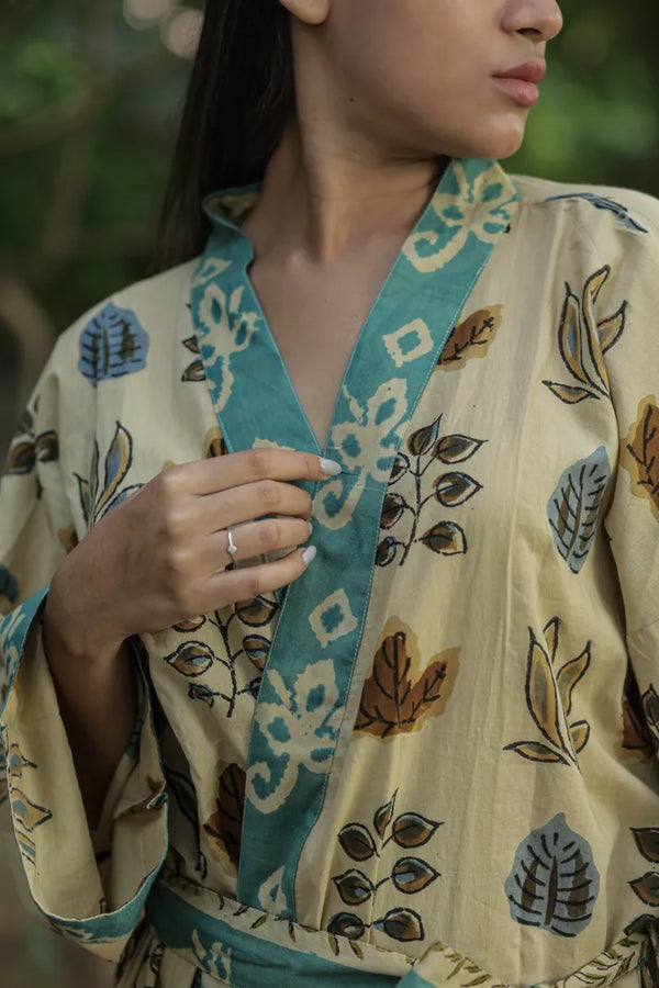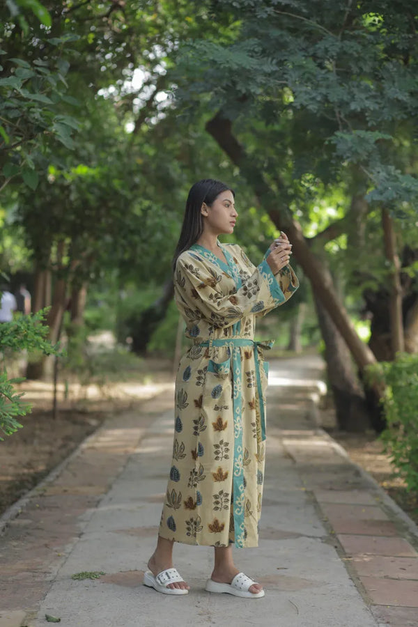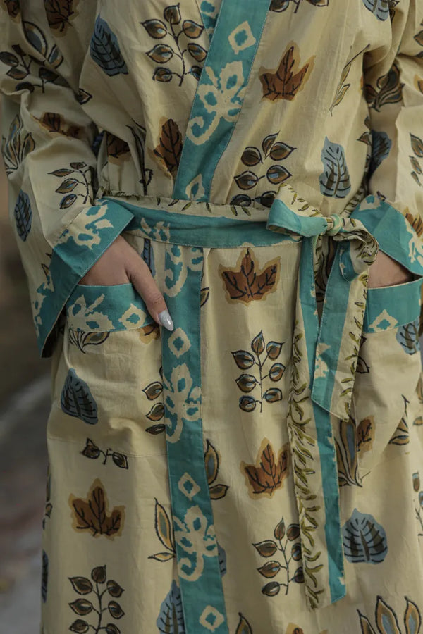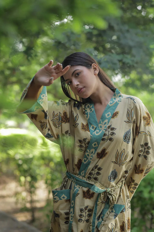 Women’s Floral Cotton Kimono Robe, Long Boho Loungewear with Pockets, One Size Lightweight Breathable Dressing Gown for Beach or Spa Outfit